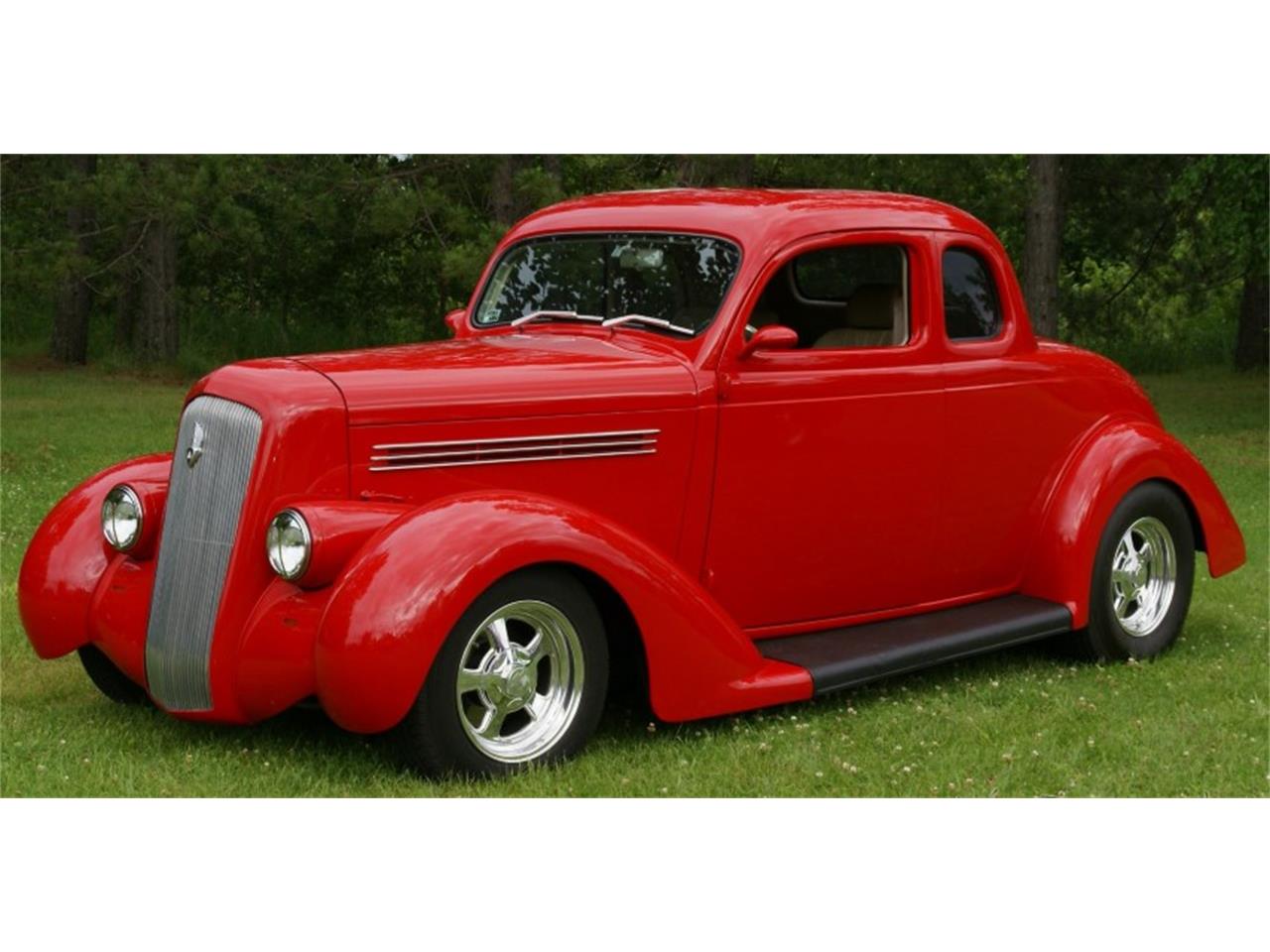 This red Plymouth Coupe is in excellent condition. The tan leather interior is beautiful.