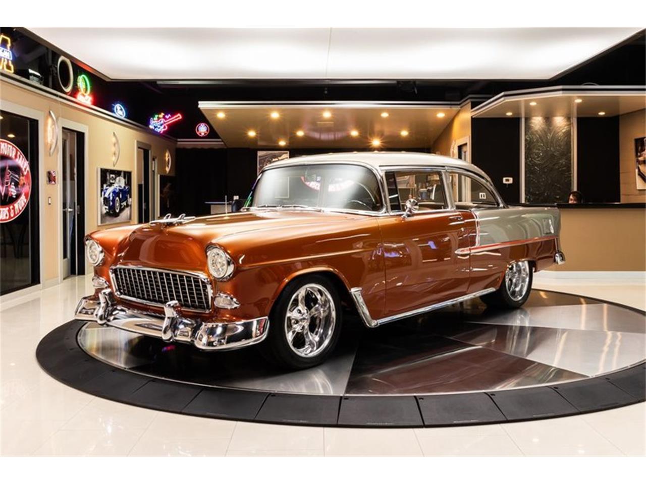 1955 Chevrolet 210 Restomod. Check out this gorgeous 1955 Chevrolet 210 Coupe.This custom 210 is sporting a laser straight body, shimmering Sunburnt Orange and Driftwood Paint finish with Green Pearl throughout, Tan and Red Interior, Billet Specialties Polished Aluminum Wheels, Headlights with Daytime Running Lights, Tinted Windows, along with Polished Stainless Steel and Chrome Components all around that s sure to turn heads as you cruise around town.