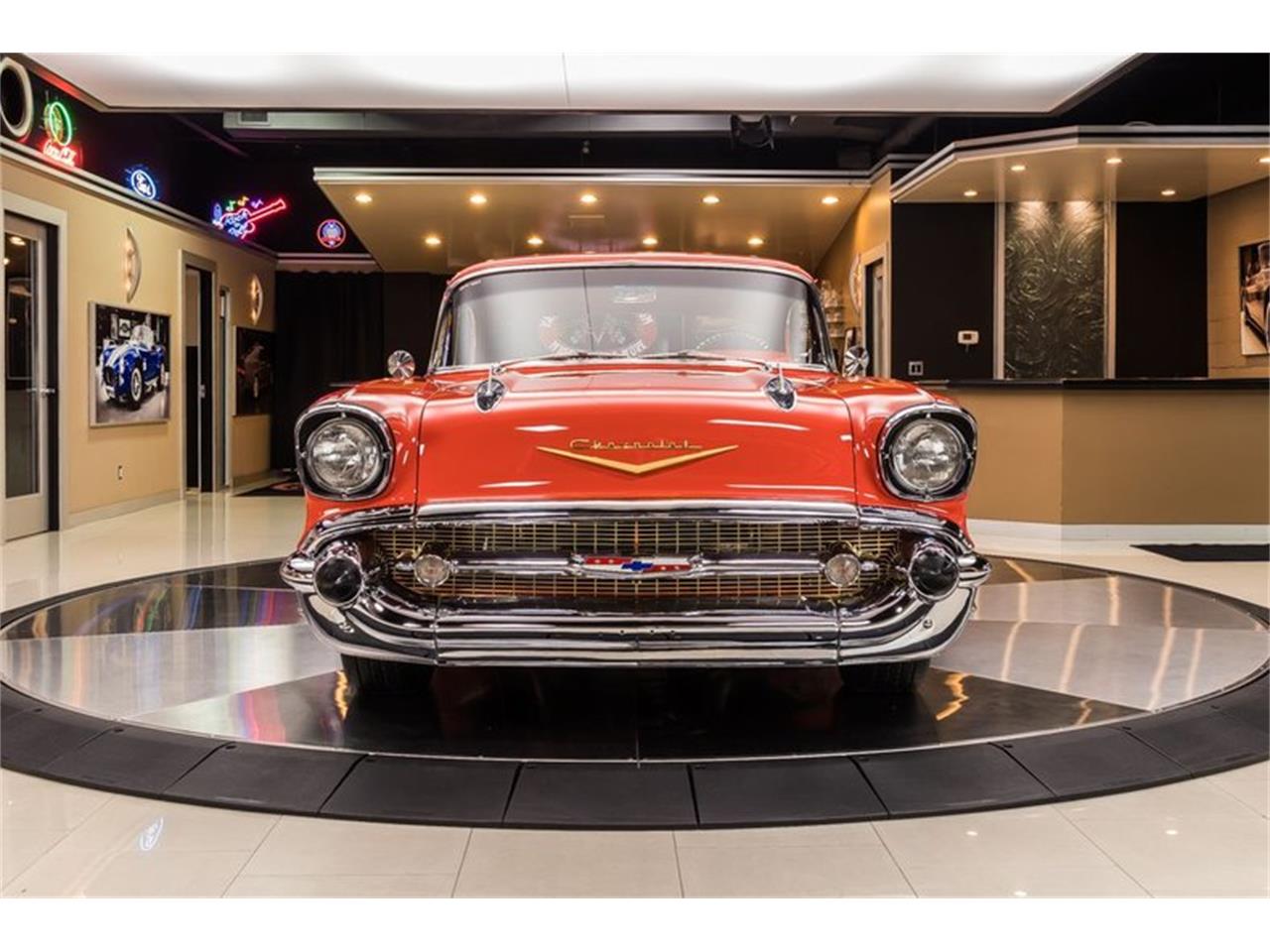 Check out this beautiful 1957 Chevrolet Bel Air! This Bel Air has a laser straight body, glossy Red Paint finish, Black and Red Interior, 17 Polished Aluminum Boyd Coddington Wheels, along with Polished Components all around that's sure to turn heads wherever you go.