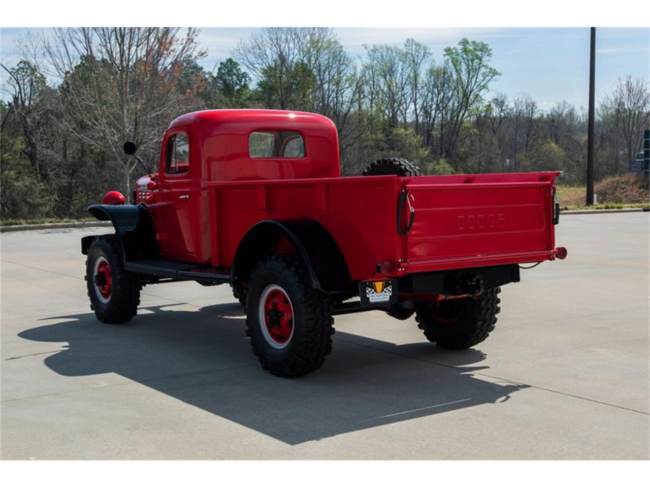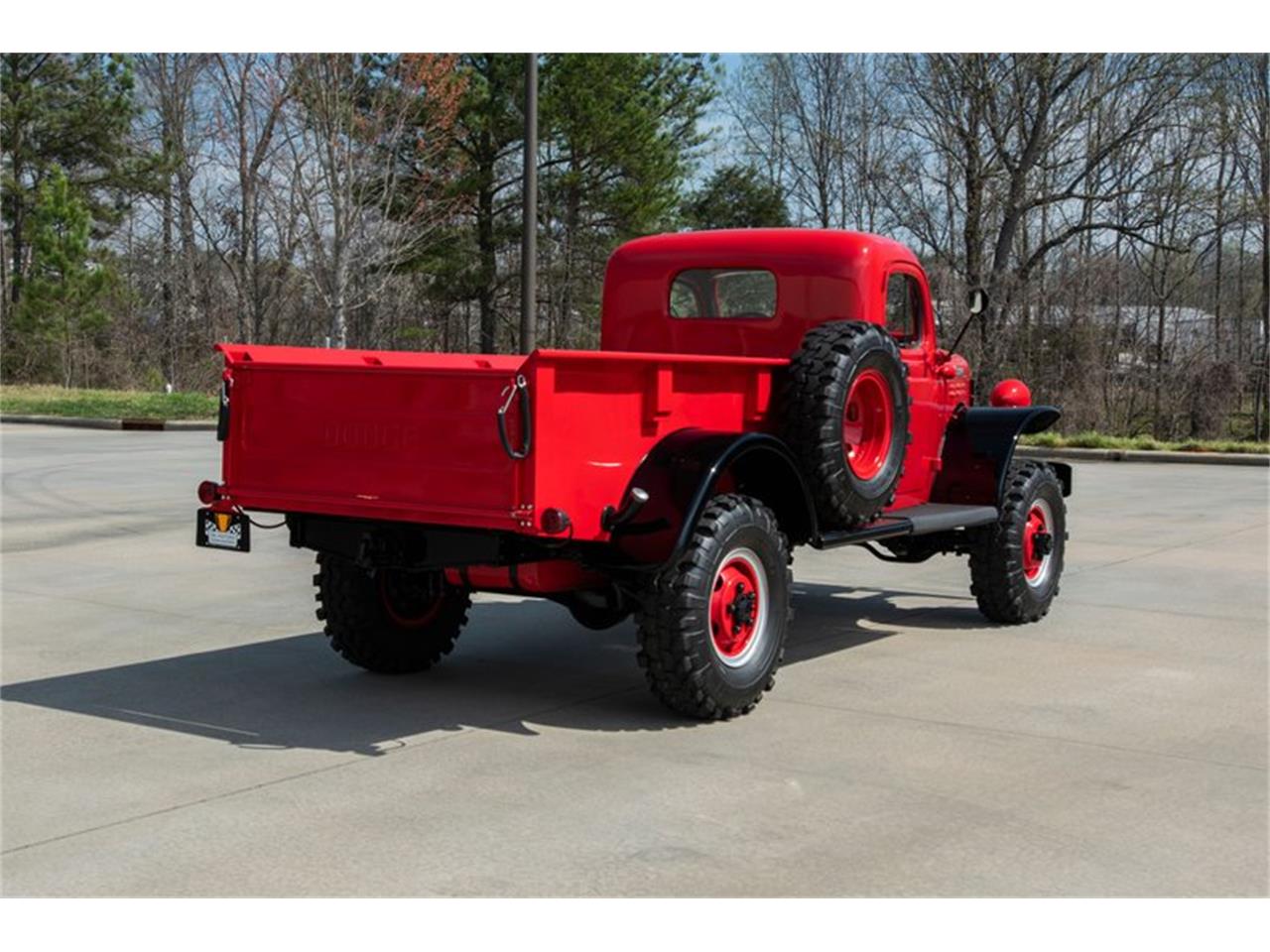 1952 Dodge Power Wagon. Fold the hood and you'll find 230 cubic inches of correct Chrysler T137 6-cylinder. At the top of that color-keyed mill, an oiled air cleaner feeds oxygen into a small Carter carburetor, which is seated on a web of cast manifolds. At the side of those manifolds, a factory cylinder head is wired to a traditional points distributor via 7mm Copper Cables. Cooling comes courtesy of a tall radiator, which frames a traditional pulley fan and an old school Chrysler generator. And the truck's simplistic engine compartment is clean and very well done, rounding out an otherwise impressive build. Power meets the pavement through a reliable 4-speed transmission, which rides between sturdy Chrysler axles. That drivetrain rolls on a factory frame, which stretches Gloss Black paint over heavy duty springs and shocks. Naturally, that frame is guided by manual steering, and stopped by manual drum brakes. Exhaust flows through aluminized pipes and a fresh muffler. And at the corners of the floor, painted Split-Rim Wheels twist Q78-16LT Interco Super Swampers. When you pop this pickup's doors, you'll find a crisp vinyl cockpit that's full of utilitarian charm. A wide bench seat complements small door panels, contoured cab panels and a tight headliner that frames one sun visor. A body-matched dash hangs tasteful stainless around a full suite of AutoMeter telemetry. The driver feels the terrain through a large steering wheel, a long shifter for the 4-speed and short sticks for the truck's 4-wheel drive. And purposeful yet stylistic touches include polished door handles, polished window cranks, a polished cowl pull and a retro VSM 900 turn signal switch.