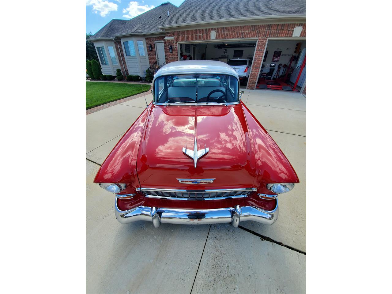 348 cu.in Tri-Power with a 700R transmission and Lokar floor shifter. Disc brakes all around. Heat works, A/C was added to the vehicle and works great. Radio and speakers work. New red line tires on Craiger rims. Great condition.