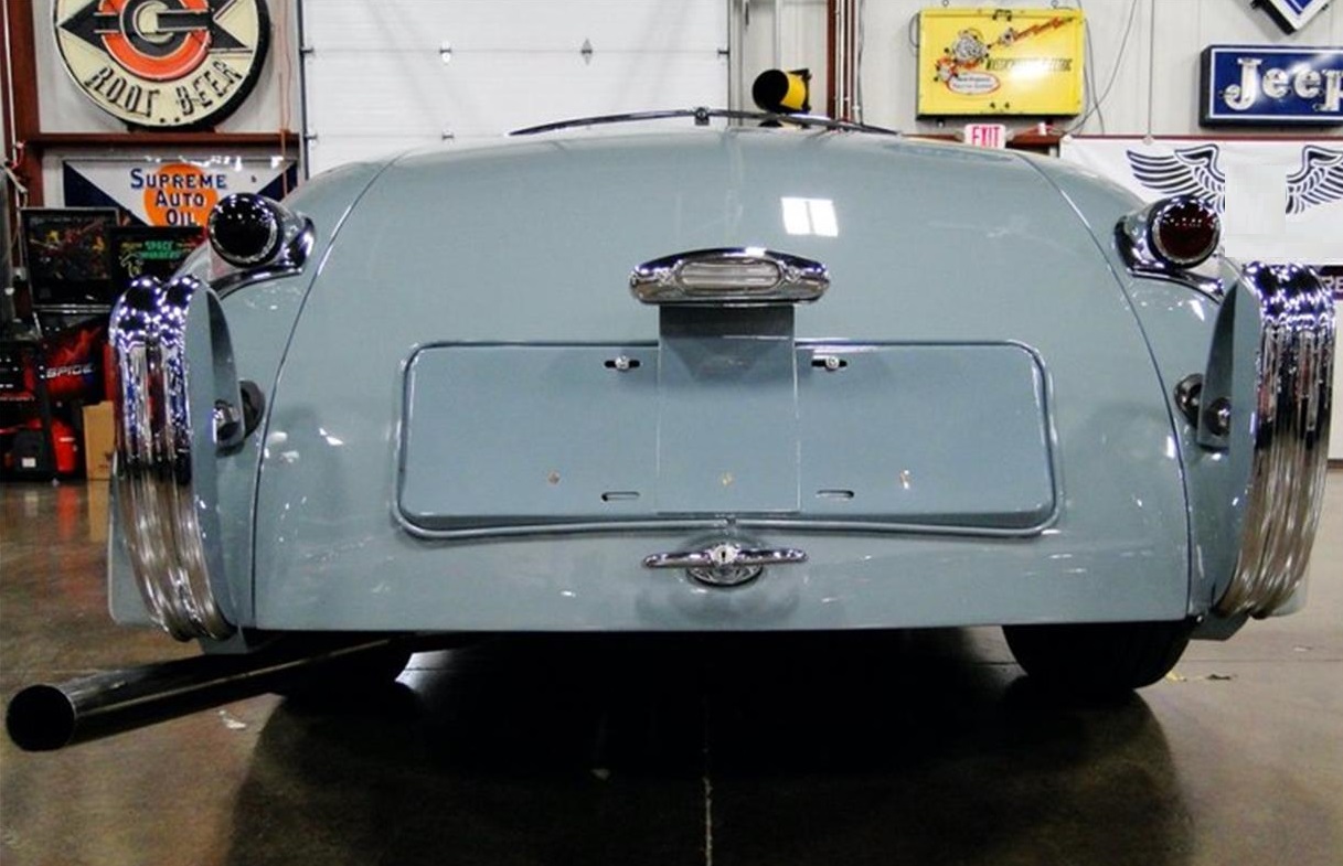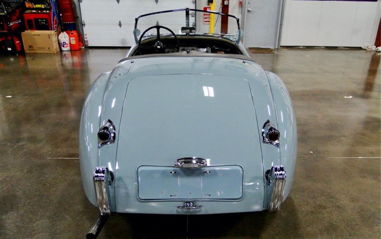 This beautiful XK 120 is finished in original factory color, Pastel Blue, and accented with grey leather interior. Power for this XK 120 is provided by this number matching 3.4 liter DOHC inline six cylinder motor which is equipped with twin SU carburetors and paired with a four speed manual gearbox.