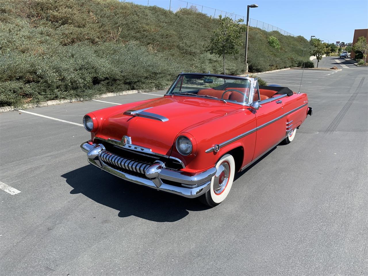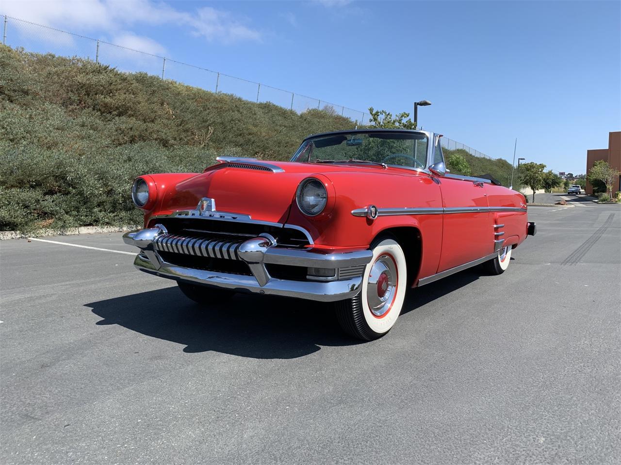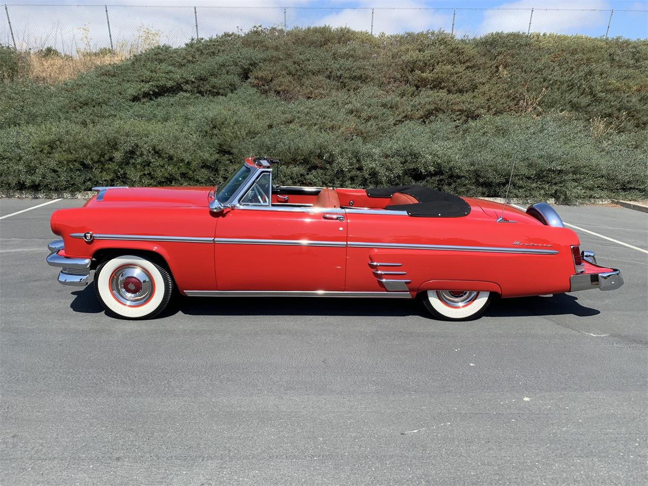 New to our Benicia showroom is this outstanding, fully restored 1954 Mercury Monterey 2 Door Convertible with Siren Red exterior paint and a matching red vinyl interior. You'll find a factory correct 256 cid V-8 engine under the hood with a Holley 4bbl carburetor and the matching automatic transmission. This rare classic comes equipped with factory electric windows, a working original radio and clock, the Continental Kit with an additional spare tire (6 total), original manuals and so much more.