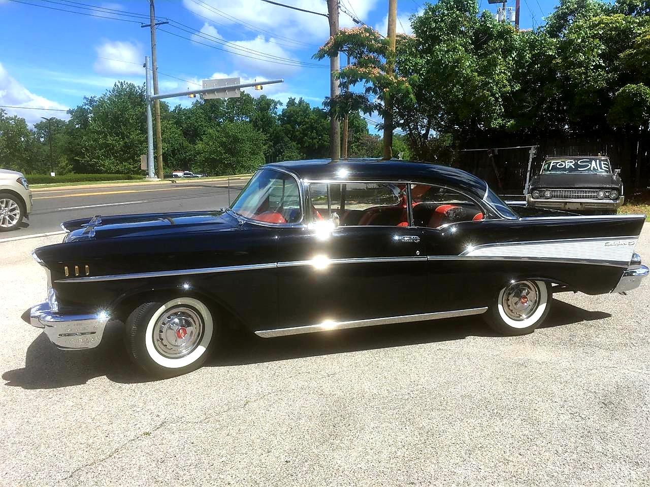 Beautiful black on red 57 Chevy. A true classic. 25,500 original miles. Mint condition. All original parts and accessories. Frame off restoration. Matching numbers throughout. Garage kept. 3 speed manual transmission on the column.