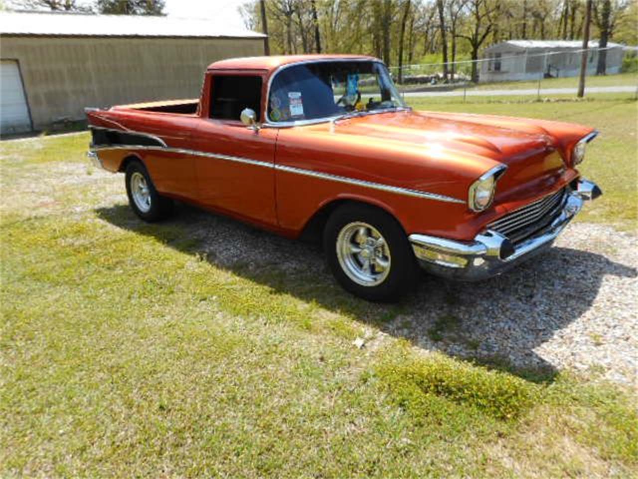 1957 Chevrolet ElCamino, custom built, 4L60E automatic overdrtive transmission , NEW motor at 1100 miles on speedometer now has 4500 miles on speedometer, rebuilt transmission at 1100 miles on speedometer, custom sunkist orange paint, air heat defrost ,electric windshield wipers, all glass perfect except passenger door glass cracked, power windows, bucket seat interior seats need to be redone to mtach rest of interior interior almost new two tone leather , am fm cd stereo, custom headliner, shaved door handles, remote entry for when doors have windows rolled up tilt steering column.