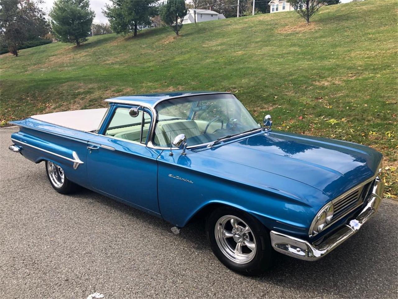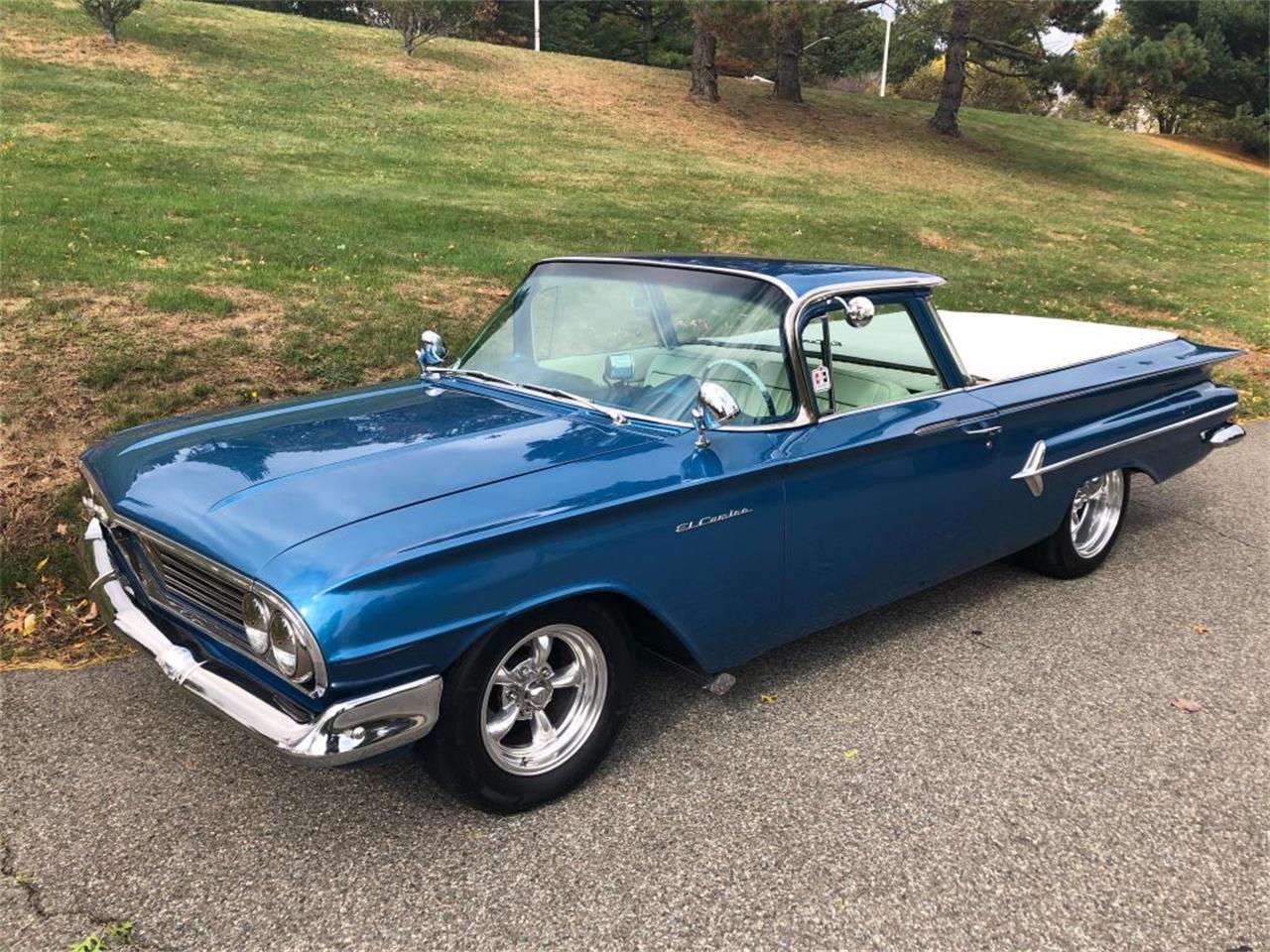 1960 CHEVROLET EL CAMINO CUSTOM; LEMANS BLUE TRIM; WHITE ENGINE; 396CID V8 4/SPEED 4W DISC BRAKES; *POWER RACK AND STEERING *AMERICAN RACING WHEELS *TONNEAU COVER *SPRAYED IN BED LINER *AM-FM RADIO. MILES 20,466. THE UNDERBODY IS AMAZING SOLID EVERYWHERE, ENGINE ,TRANS REAR ALLPERFORM THE WAY THEY SHOULD WITH GREAT SOUND FROM HEADERS AND FLOW MASTER EXHAUST.