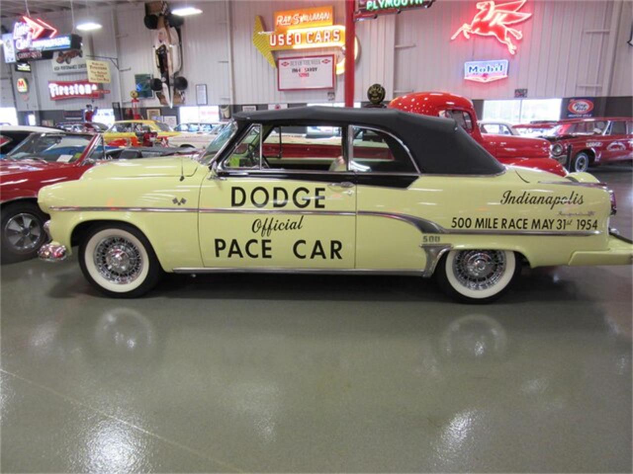 This is a very nice and very original 1954 Dodge Royal Indianapolis 500 Pace Car Replica. It is 1 of 701 Pace Car replicas produced by Dodge. It is in excellent overall condition. It is what I would consider a very nice driver quality car to show and enjoy but not a concours ground up example. It is powered by the original Dodge Red Ram Hemi motor and has the original PowerFlite automatic transmission. It has all of the correct badging, lettering and options that the Pace Car replicas came with.
