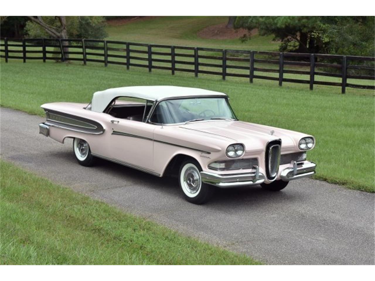 This 1958 Edsel Citation Convertible was only built in 1958 and this car is one of only 930 built . There were only three produced in this color combination and this one is the only one believed to still exist. This car has been restored to its former glory and is spectacular. It is equipped with the original E 475 V8 engine 410.1 cui. 4 barrel carburetor and Teletouch three speed transmission which produces 345 bhp, Power Steering, Power Windows, Power Lubricating System, Power Drum Brakes, Tachometer , Clock, Town and Country Radio, Power Antenna , Power Front Seat, Power Top and much more.