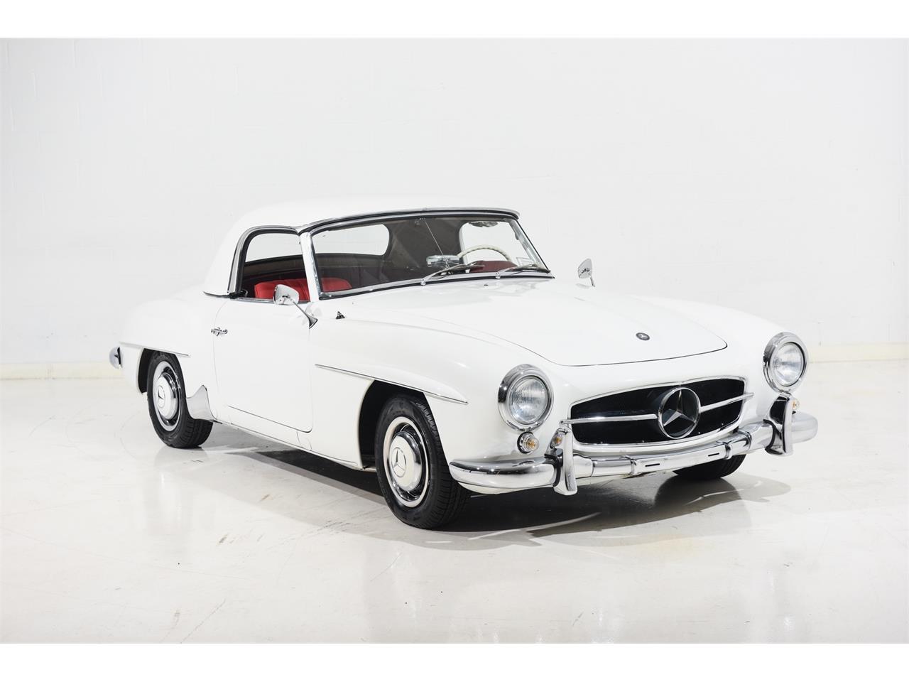 1960 Mercedes 190SL featured in the original color combination of white with red interior. This 190SL is an older restoration that we would characterize as a high level driver. It includes both the convertible top and removable factory hardtop, and the seats are recently reupholstered in red leather. It has the original radio and shows just 18k miles. The paint is very good, the undercarriage is clean and tidy with a new exhaust system.
