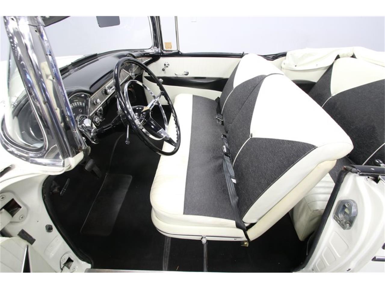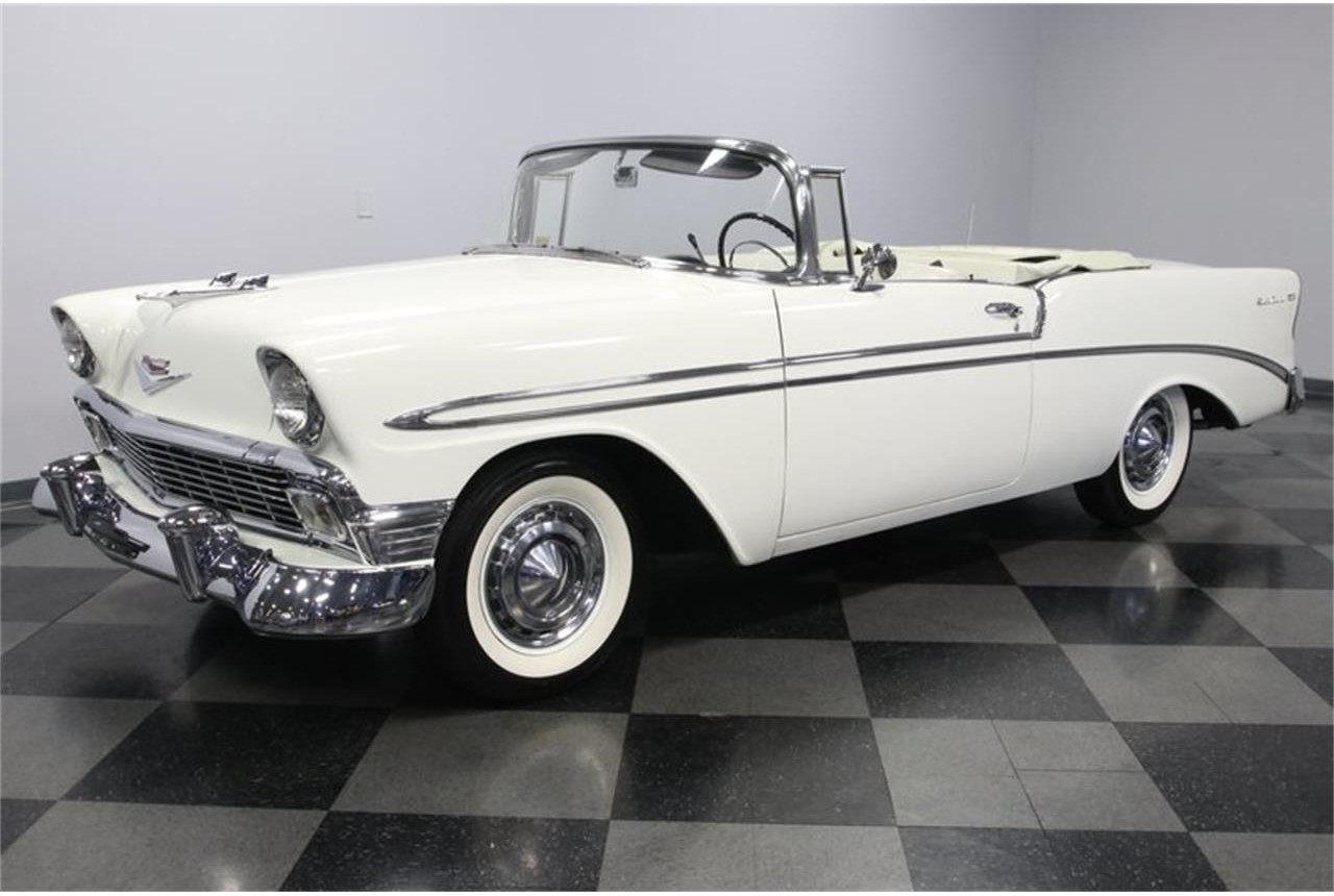 We all love a desirable classic like a 1956 Chevrolet Bel Air convertible. This one just looks like it was built to lead the parade. After all, there s just something purely premium about a 50s classic finished in nothing but bright white and brighter chrome. The form fitting chrome bumpers, full width grille, complete windshield trim, factory wheel covers, and jet age hood ornament have all been given the proper care to make sure this looks like rolling history.