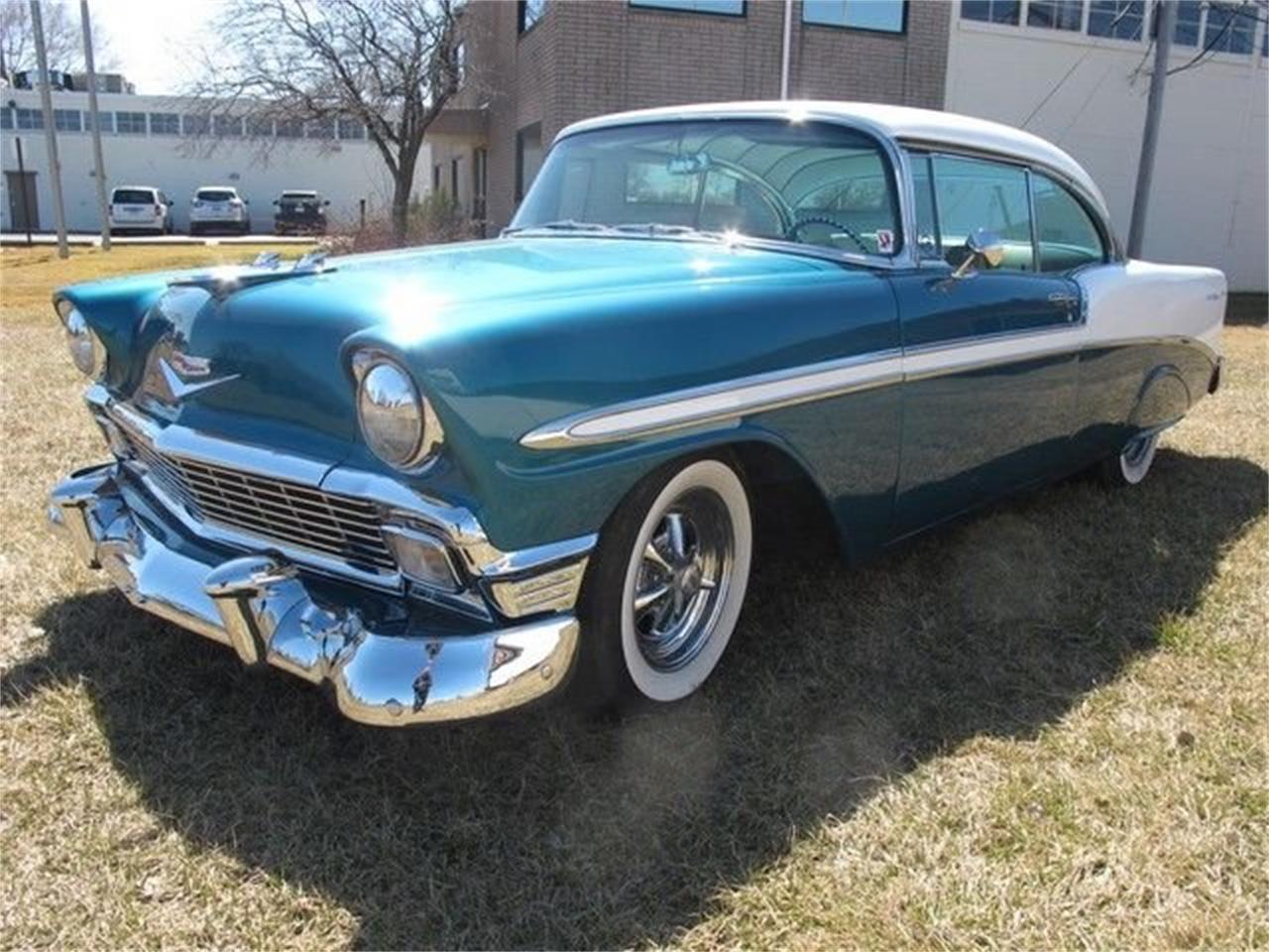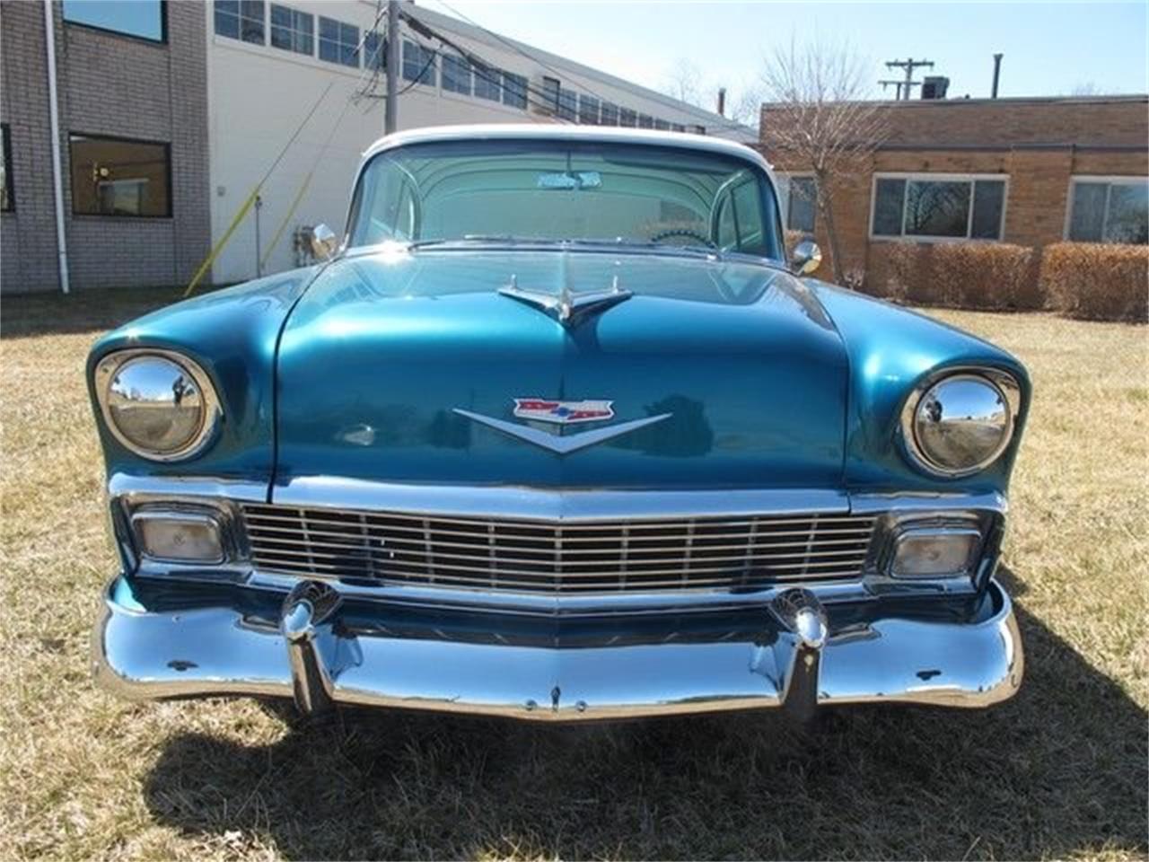 1956 BelAir 2 Door Hardtop, A frame off full restoration was completed. The paint is eight years old and there are only about 12,000 miles on the restoration. The power comes from a newer LT1 350 CID Tuned Port Injection with a matching 6 Speed Manual Transmission. The Rear End is a 9 Ford narrowed for the larger tire clearance. The new style front cross member and GM Suspension have been added for safety and driver comfort.
