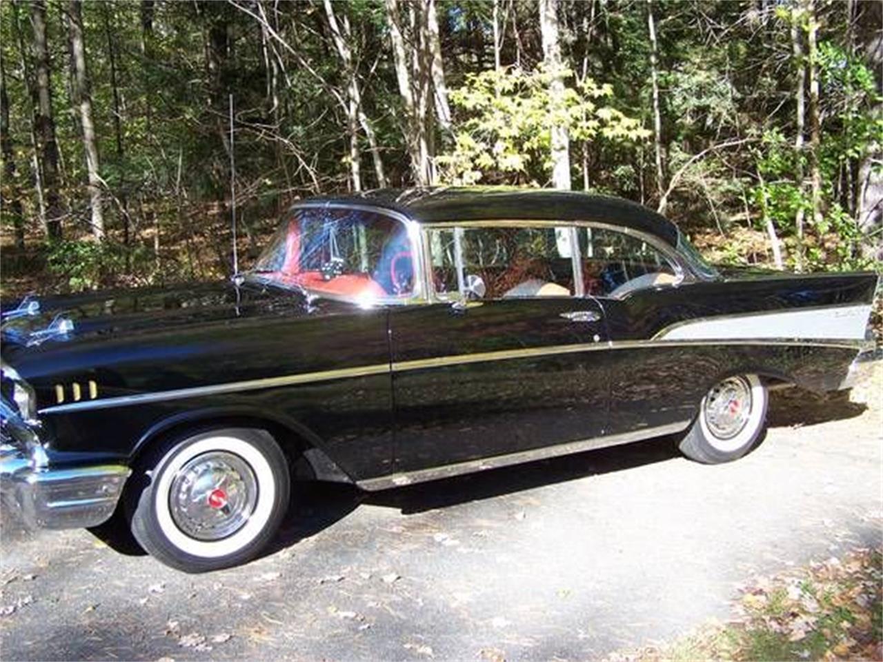 1957 Chevrolet Bel Air 2 Door Hardtop in Onxy Black with a red and black interior. It is a true Bel Air Sports Coupe that was manufactured in Los Angeles, CA. Look up 1957 Chevrolet . It is solid, solid, solid, and completely rust free. The body is LAZER STRAIGHT, and you won t find a better body on a 57 Chevy anywhere. I kept it as original as possible, as it was very clean and mostly original when I bought it. It gets thumbs up and honking horns wherever I go. This is a NUMBERS MATCHING car. The body and all the stainless moldings and chrome are all original to the car, as is the engine. I believe this car has had a frame off restoration some time ago, and still looks fantastic. The 283 cubic inch engine has been rebuilt, and so has the original Carter 4 barrel carb.