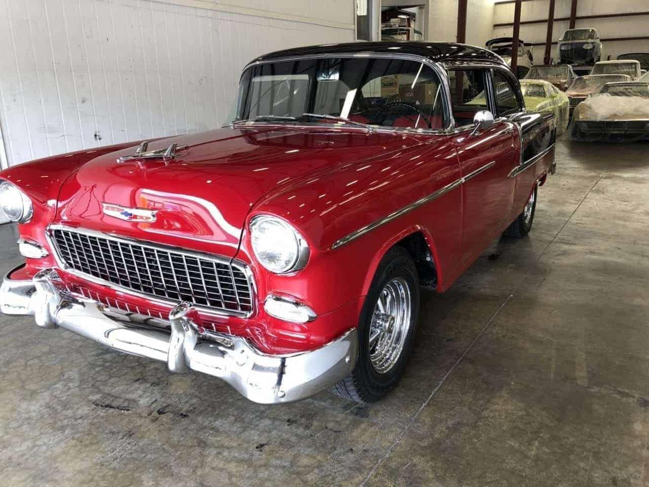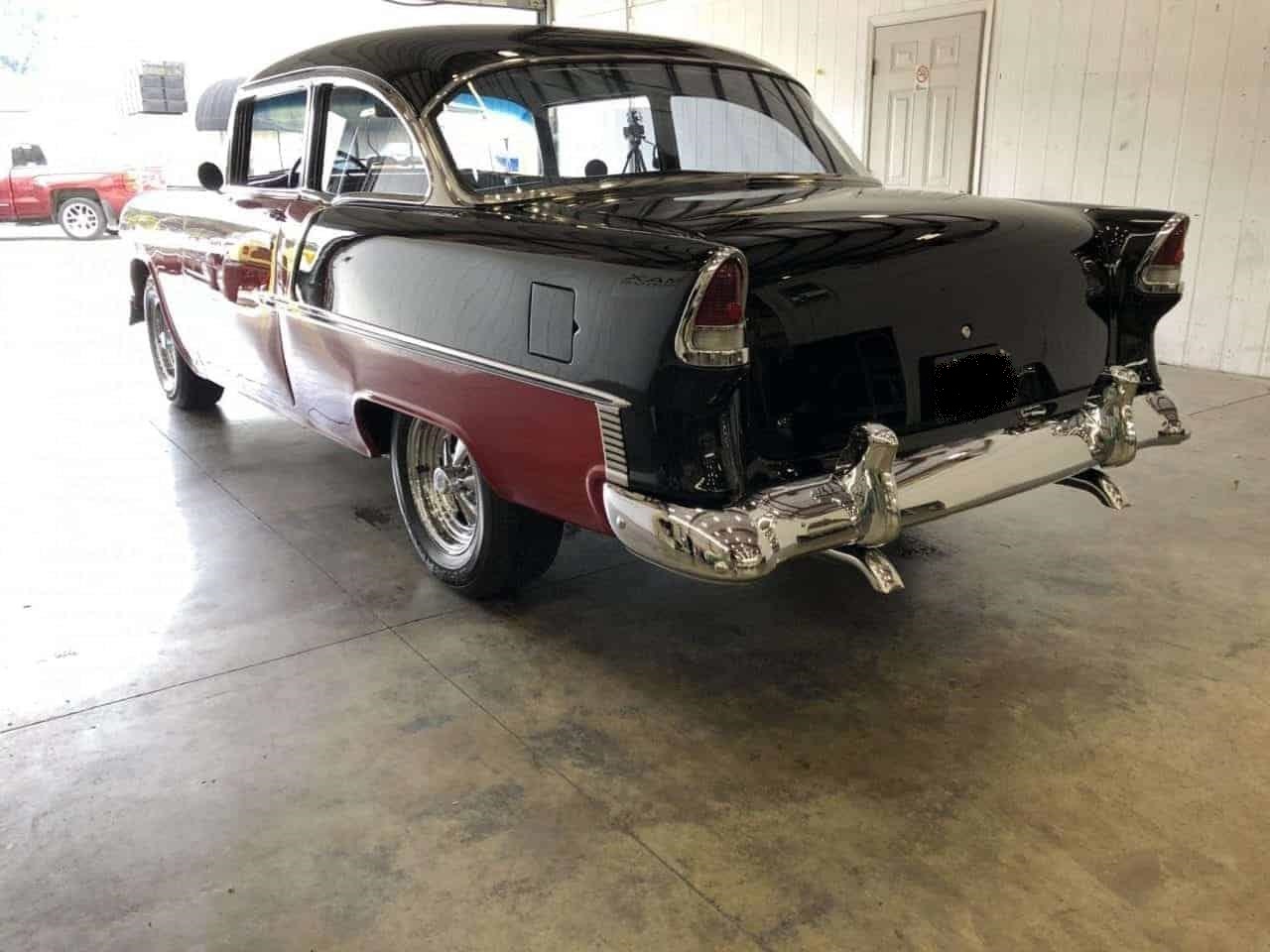Look at this glorious 55 Chevy Bel Air.The two tones red and black paint is a show stopper.