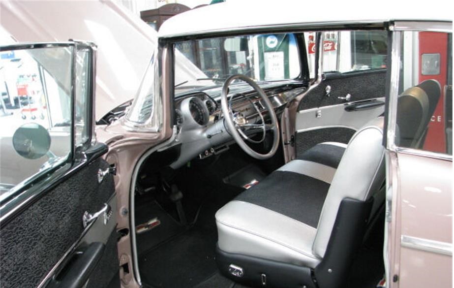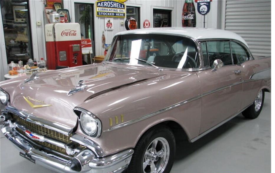 1957 Chevrolet Bel Air Hardtop. colored in the rare Desert Rose with a white top. It is powered by a strong running 350 Cubic Inch motor coupled to a smooth shifting 3 speed automatic transmission. Runs and Drives as New , Very Rare Color , No Rust. Drive or Show.