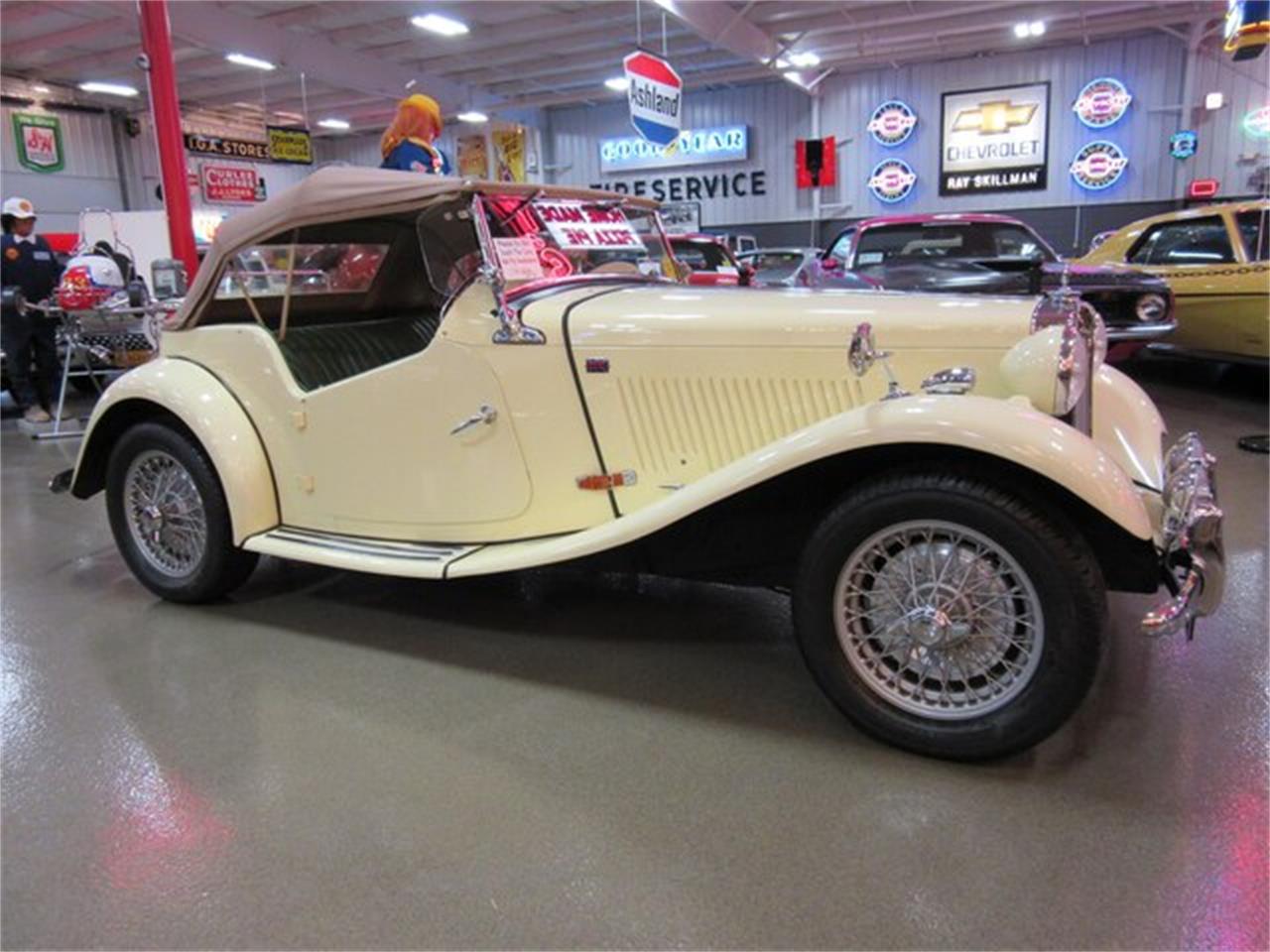 This 1952 MG TD was beautifully restored to a high standard. It has been broken in and can be used and enjoyed as it should be. It is finished in yellow with green leather and a beautiful tan cloth convertible top. The interior features a beautiful wooden dash with Jaeger gauges, three spoke wooden steering wheel, folding windscreen with wings, sun visors and a heater. It has the side curtains and cockpit cover. Lucas fog and driving lights are up front along with a Motometer mascot. It has the luggage rack in the back along with the spare tire.