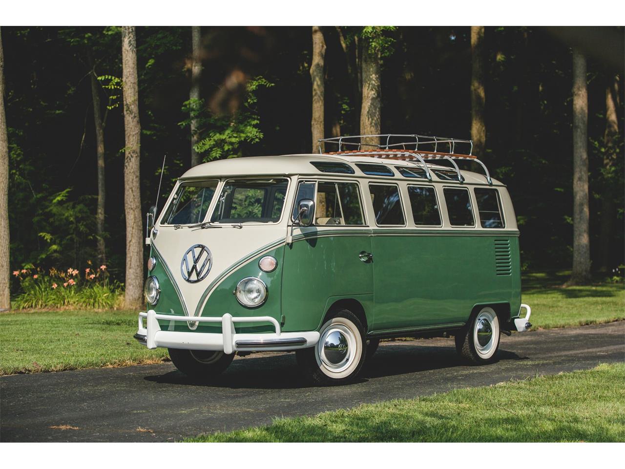 The bus was born as a 21 Window Microbus Deluxe Samba on October 7, 1965 in the original colors of velvet green and pearl white.