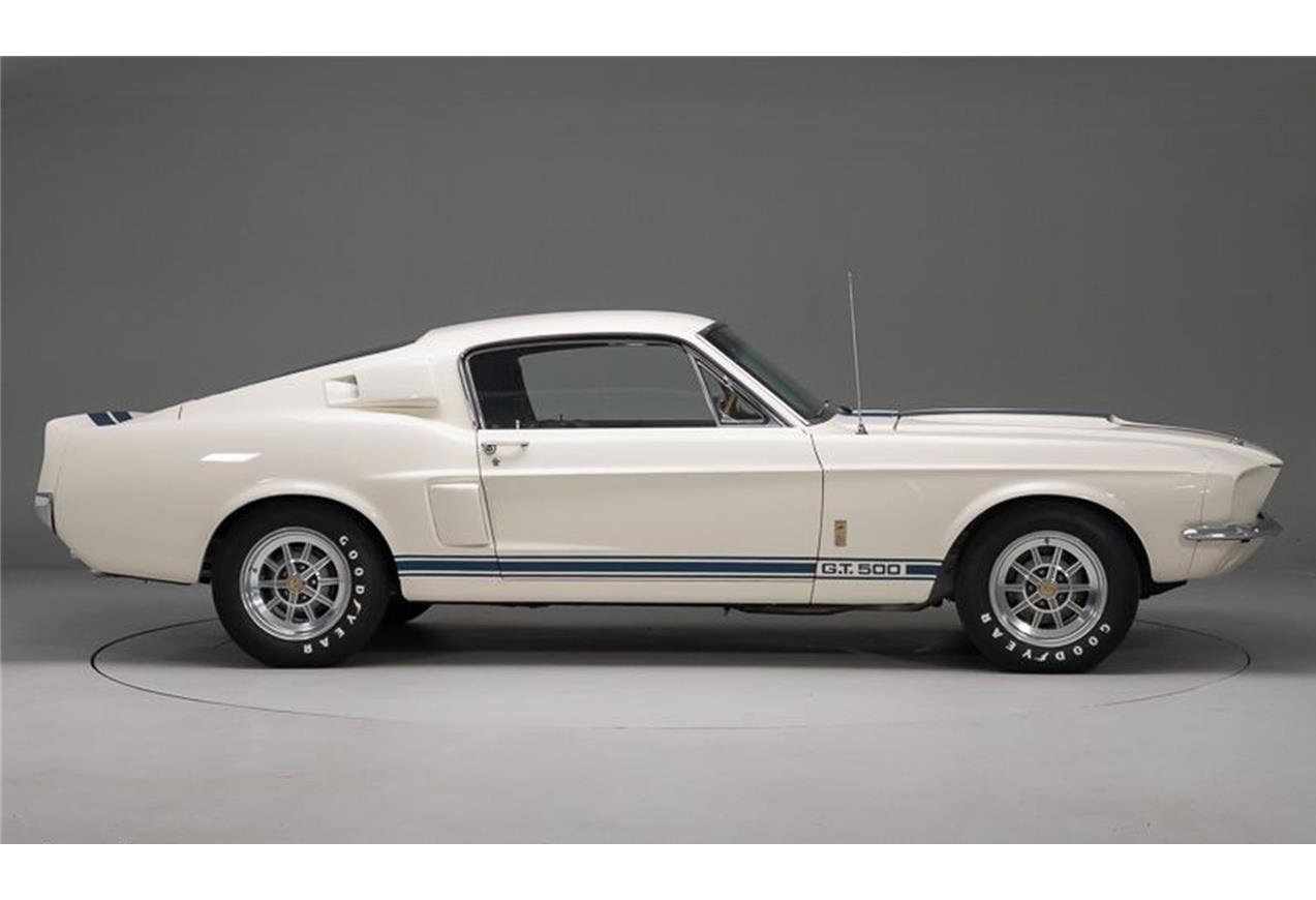 1967 Shelby GT500 428ci Police Interceptor engine in excellent working order. It rolls on the famous 10-spoke aluminum Shelby wheels with appropriate Goodyear bias-ply tires. The 428 is managed via a four-speed manual transmission actuated with a beautiful chrome shift lever. The seats, carpets, dash, headliner, and inner doors are all stunning in black and are in outstanding condition.