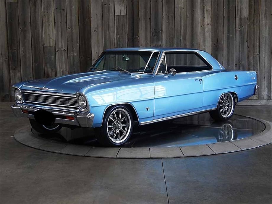 1966 Chevy II Nova. Glacier blue with blue vinyl interior. This iconic two door hard top muscle car is beautiful and drives as good as she looks.