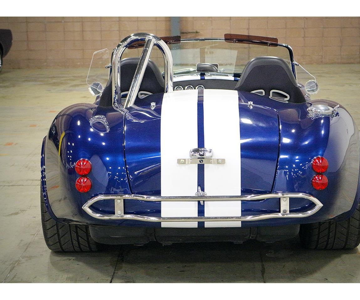 Thats right it is a 4.6L 32 valve 305 HP with a five speed transmission. The rear is a 3:55. This Cobra is equipped with AM FM radio, CD player, seat belts, power steering, power brakes, anti lock brakes and traction control. That makes for one well equipped kit car.