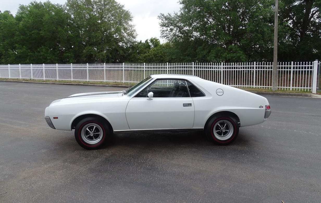 Beautiful 1968 AMC AMX for sale. Under the hood of this beautiful car is the date code correct 390 V8. The transmission is a 3-speed automatic that shifts smooth throughout all gears. AM Radio, power brakes, power steering, Vinyl Interior, Seatbelts, and Rally wheels wrapped in radial tires. Excellent condition.