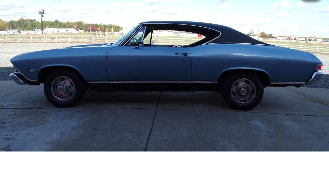 1968 Chevrolet Chevelle. This car was done right back to its grato blue with black vinyl top. Back with the original 396 th400 transmission and 12 bolt posi rear end with 3:07 gears. Options on this Chevelle 396 SS include, AC, AM Radio, Power Brakes, Power Steering, Vinyl Interior, Power Windows, Seat Belts, Rally wheels wrapped in bias Ply Redline Tires.