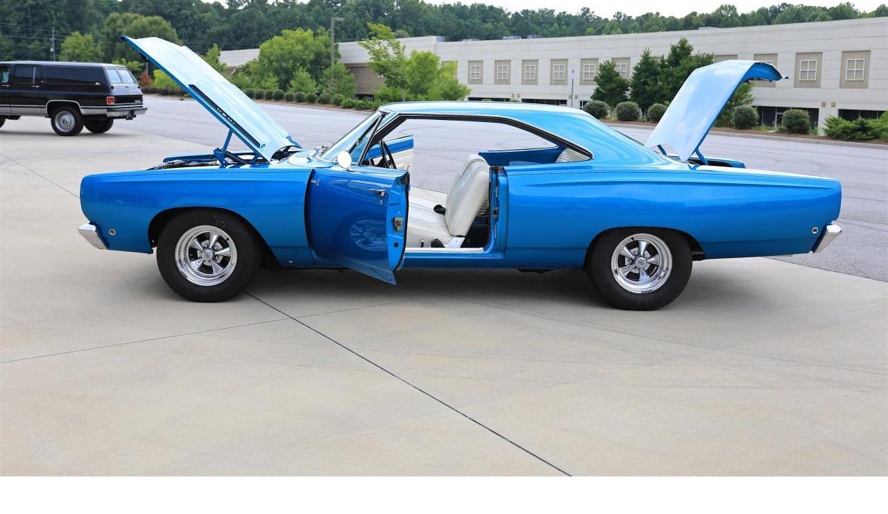Rare 1968 Hemi Plymouth Roadrunner.The body is painted in QQI Metallic Blue paint that shows Gorgeous.