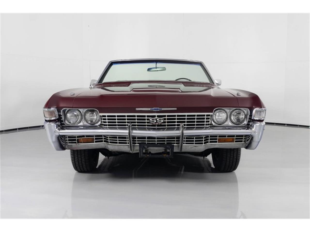 This 1968 Chevrolet Impala SS427 Convertible for sale has a 427c.i.(385hp/460 lb-ft) Numbers Matching V8 w/ 4bbl Carb, Numbers Matching TH400 Automatic Transmission, 12 Bolt Rear w/ 3.08:1 Ratio, Correct Cordovan Maroon Exterior w/ White Top, Correct Parchment Bucket Seat Interior, 1 of 1,778 Impala SS427's Produced, Reportedly Only 10% Were Convertibles, Very Rare Factory Comfortron Air Conditioning, Power Steering, Power Brakes, "U14" Special Instrument Package (Tach, Oil, Temp, Battery), Power Drivers Seat, Power Windows, Power Top, Tilt Wheel, AM/FM Radio, Padded Dash, Correct SS 427 Badging on Dash and Door Panels, Fender Mounted Turn Signals