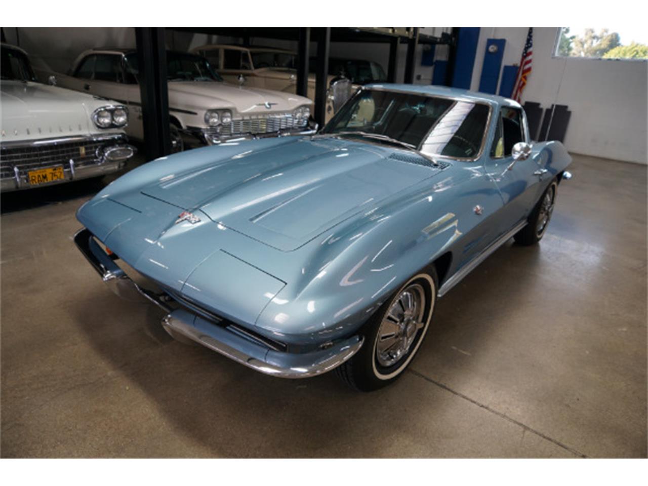West Coast Classics are proud to present an absolutely exceptional example of this beautifully restored and seemingly completely accident free very rare 1964 Chevrolet Corvette Sting Ray Fastback Coupe with it's original matching #'s L76 327cid 365HP V8 engine and finished in it's original and quite stunning 'Silver Blue' factory color paint with it's original correct 'Blue' vinyl trim code STD interior and with standard options including bucket seats, cockpit cluster console, simulated walnut steering wheel, full carpeting, complete instrumentation and clock and boasting added factory options including:327/365HP L76 V8 Engine ($107)4 spd Muncie close ratio manual transmission ($188)4 seasons Air Conditioning ($421)PB AM/FM Radio ($176)Positraction Axle 370R ($43)Transistor Ignition EQ ($75)Vacuum Power Brakes ($43)Tinted Glass ($16)Back Up Lamps ($10)670x15 4 Ply WSW ($31)The car is very striking and seemingly completely accident and obviously rust-free and looks extremely impressive in it's professionally repainted original 'Silver Blue' (#912 Color Code, 1 of only 3,121 in this color) factory color paint with it's original matching 'Blue' (#490 Trim Code) vinyl interior in exceptional condition throughout.