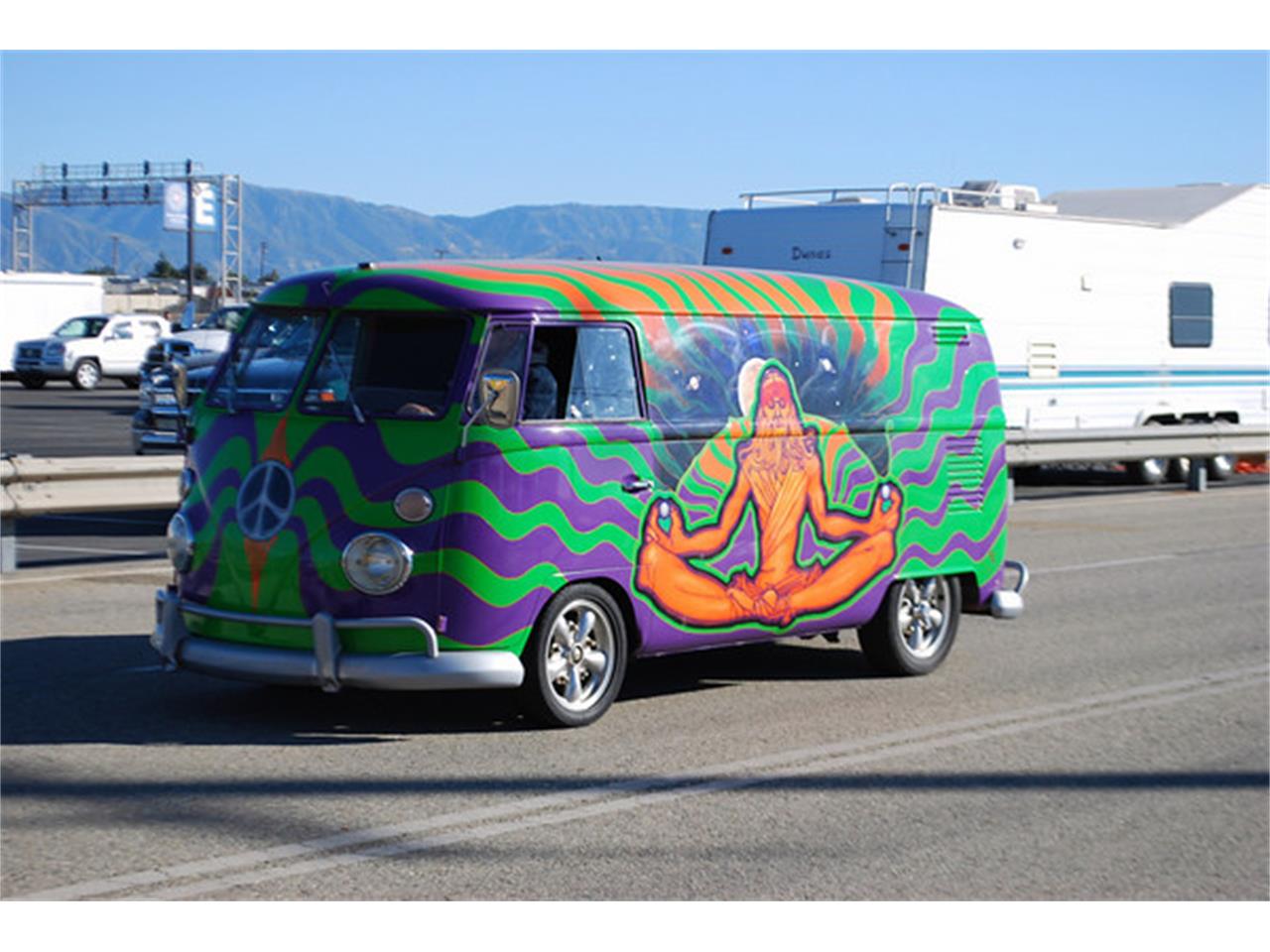 Jo, 1967 bus has been lowered with drop spindles in front and an upside down bug trans axle in the rear, with Empi style wheels.