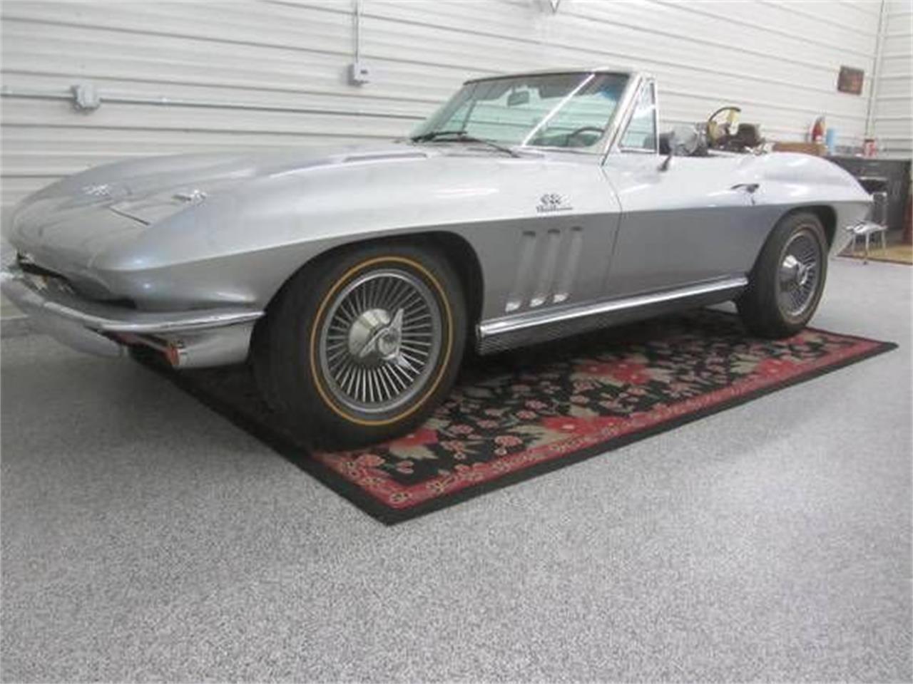 1966 Chevrolet Corvette Stingray Convertible has Silver Pearl exterior, Black interior with headrests. This car has a 427/390H.P. Numbers Matching Turbo Jet Engine with a 4-Speed Close Ratio Munci manual Transmission & 3.55:1 Ratio Positraction Differential. Comes with factory air conditioning, 5 genuine Kelsey Hays Knock Off Wheels w/Goodyear Gold Line tires, power steering with telescopic steering & teak wheel, 4 wheel power disc brakes, Am/Fm radio, soft ray tinted glass, and hazard warning lights.