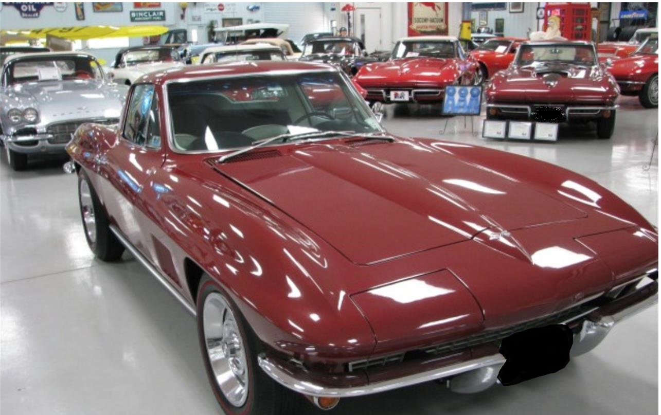 1967 Corvette Coupe , Marlboro Maroon , White and Black interior.