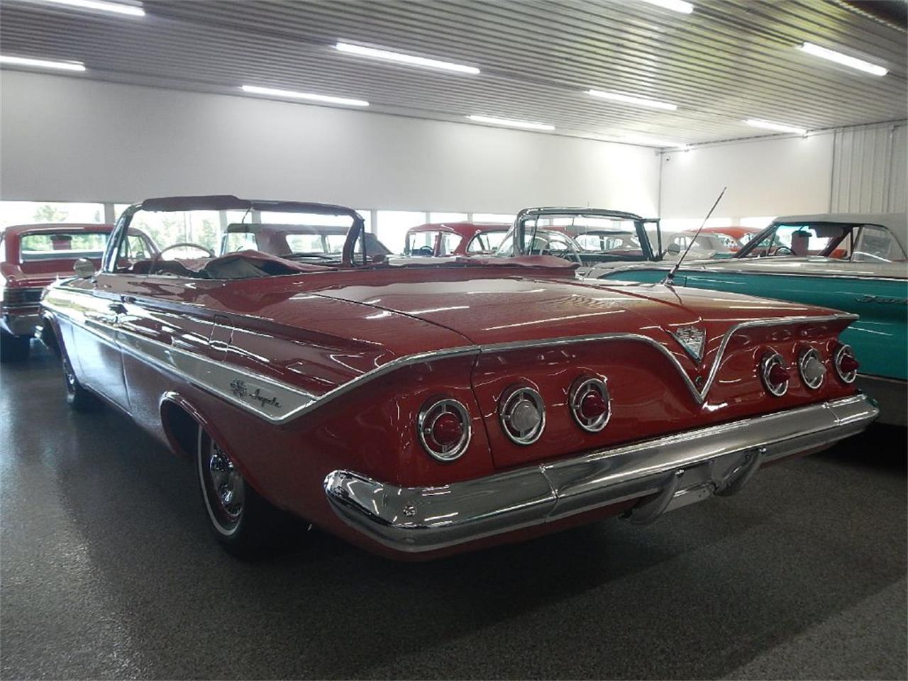 To find a 1961 Chevy Impala convertible nowadays is rare, but to find one as clean, mostly original, and with such low mileage is almost unheard of. It s even had a comprehensive restoration and put back to the factory code 923 red paint. With red interior and a new white power convertible top, this thing is about in as good of condition as it was coming from the factory.