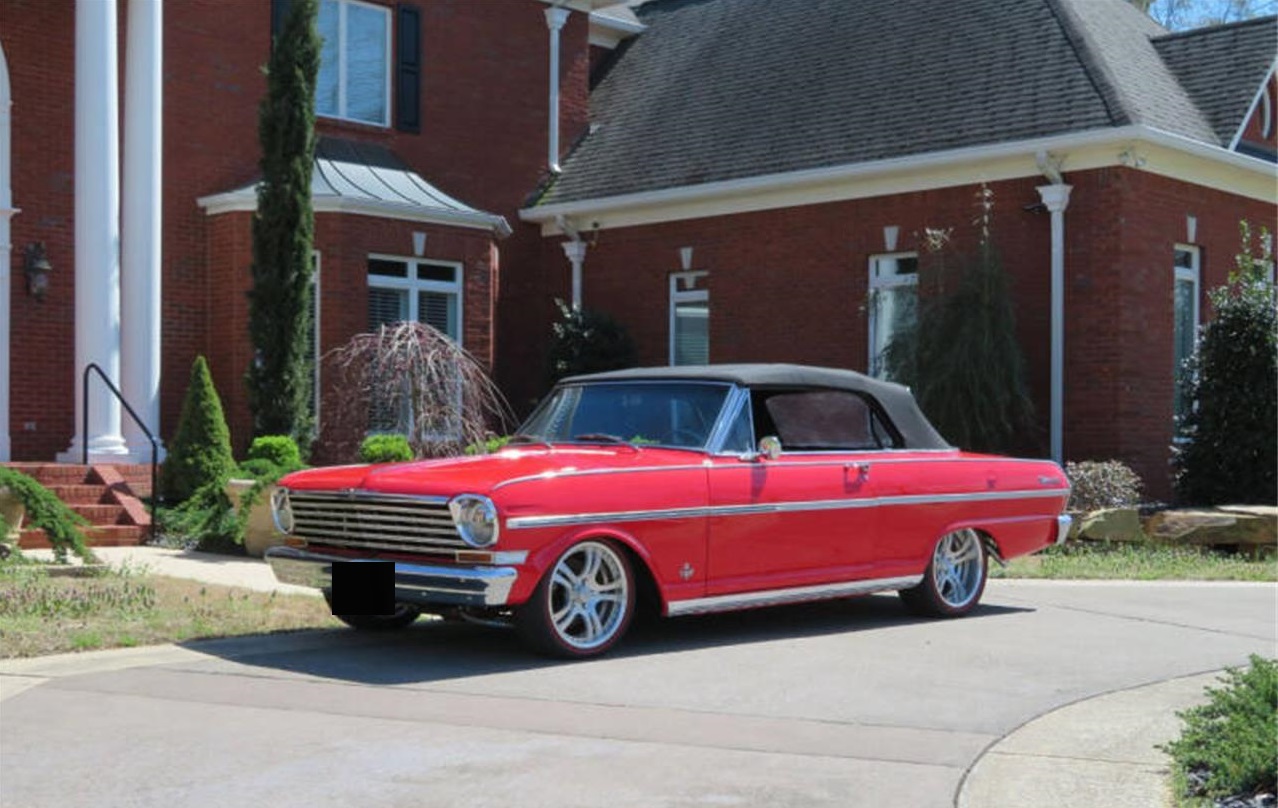 1963 SS Nova Conv. Resto Mod, 383 383hp Engine, Tremec TKO 5 Speed Transmission, 9 Inch Ford Rear End, Power Steering, Power Top, Vintage AC, 160MPH Speedometer, Detroit Speed MiniTub Kit, Wilwood 4 Wheel Disc Brakes with Crossed Drilled Rotors, CPP Tubular Upper and Lower Control Arms, QA1 Adjustable Front and Rear Shocks, Borgeson Power Steering Box, Calvert Racing 2 Lowering Split Mono Leafs, Speedway Instrument Cluster, Custom Jason Rushforth Super Spoke Wheels, Red Line Tires, TRUE SS Resto Mod Chevy II Nova.