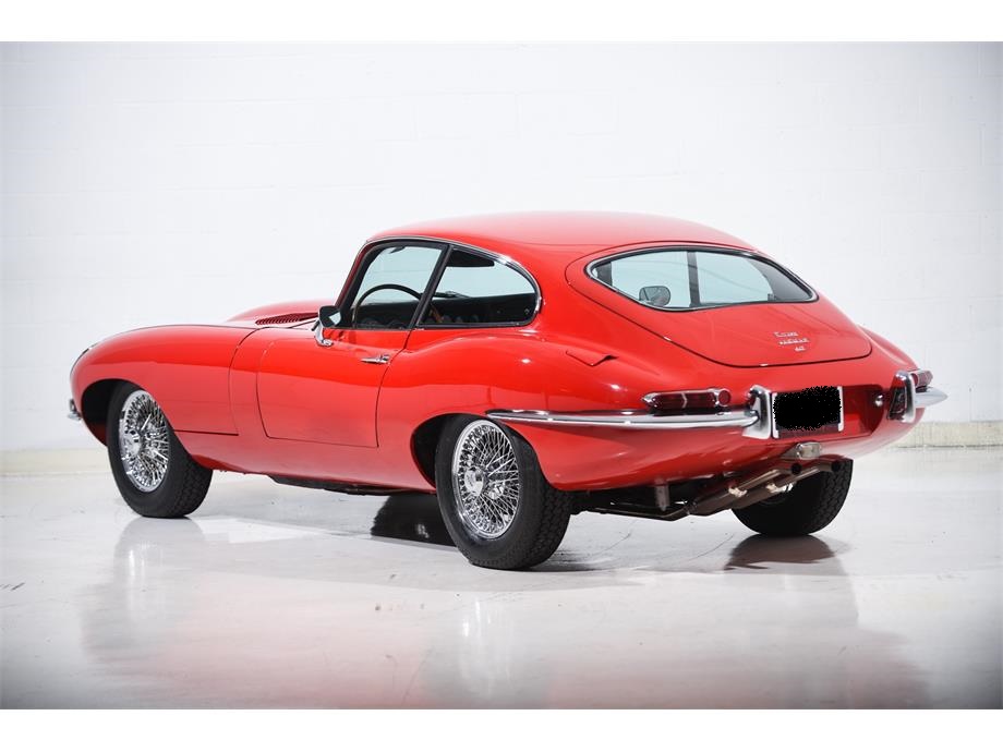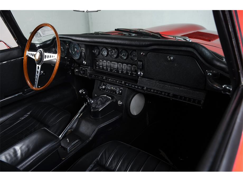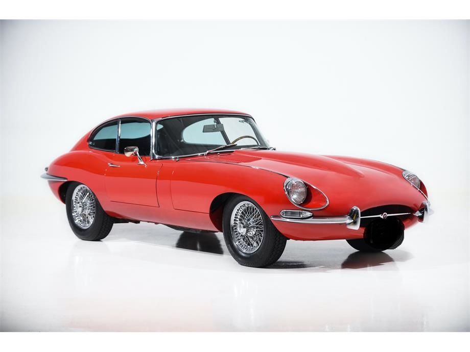 1968 Jaguar E Type FHC featured in Signal Red with black leather interior.