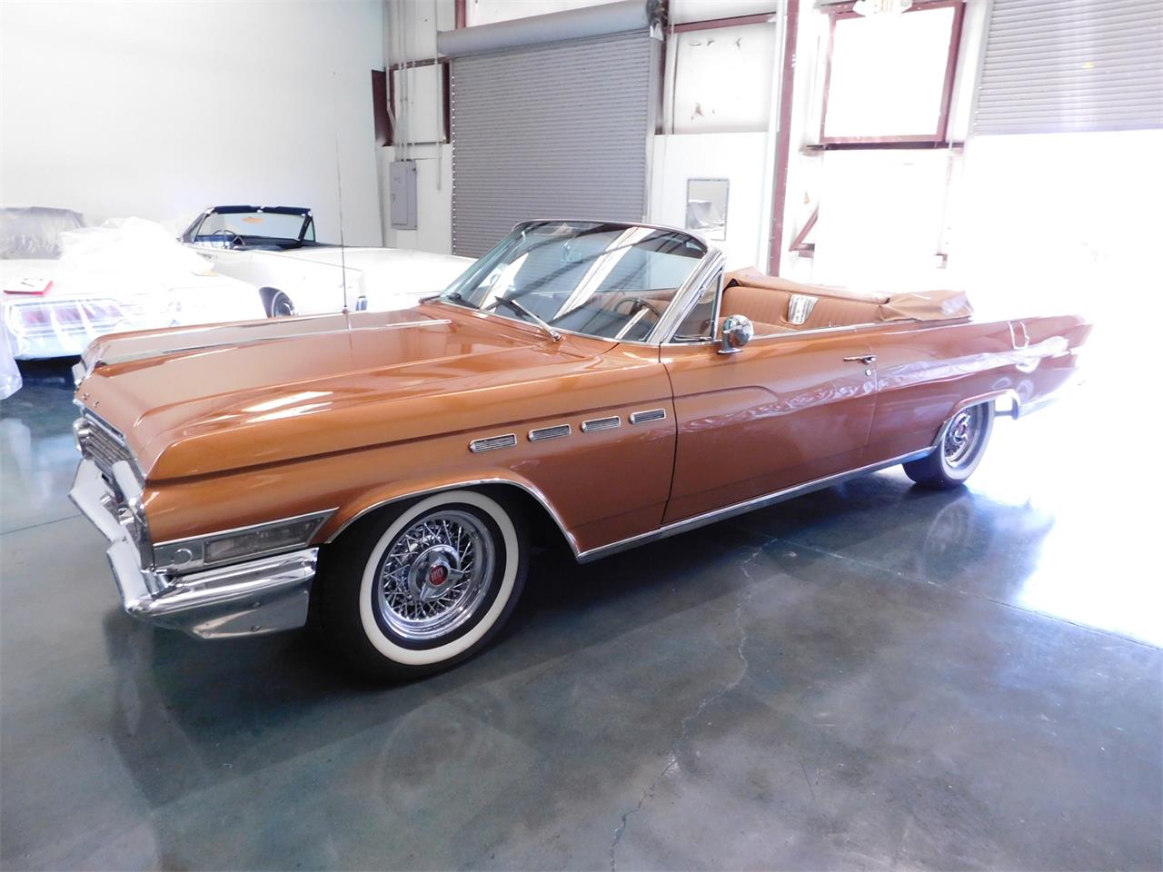 Gorgeous 1963 Buick Electra 225 Convertible painted in Bronze Metallic Mist with color matched interior. This has the rare leather bucket seats and console option for a sports car feel, it even has the vintage tissue holder. Everything functions as well as it looks. This car has many power convenience options including cold air conditioning.