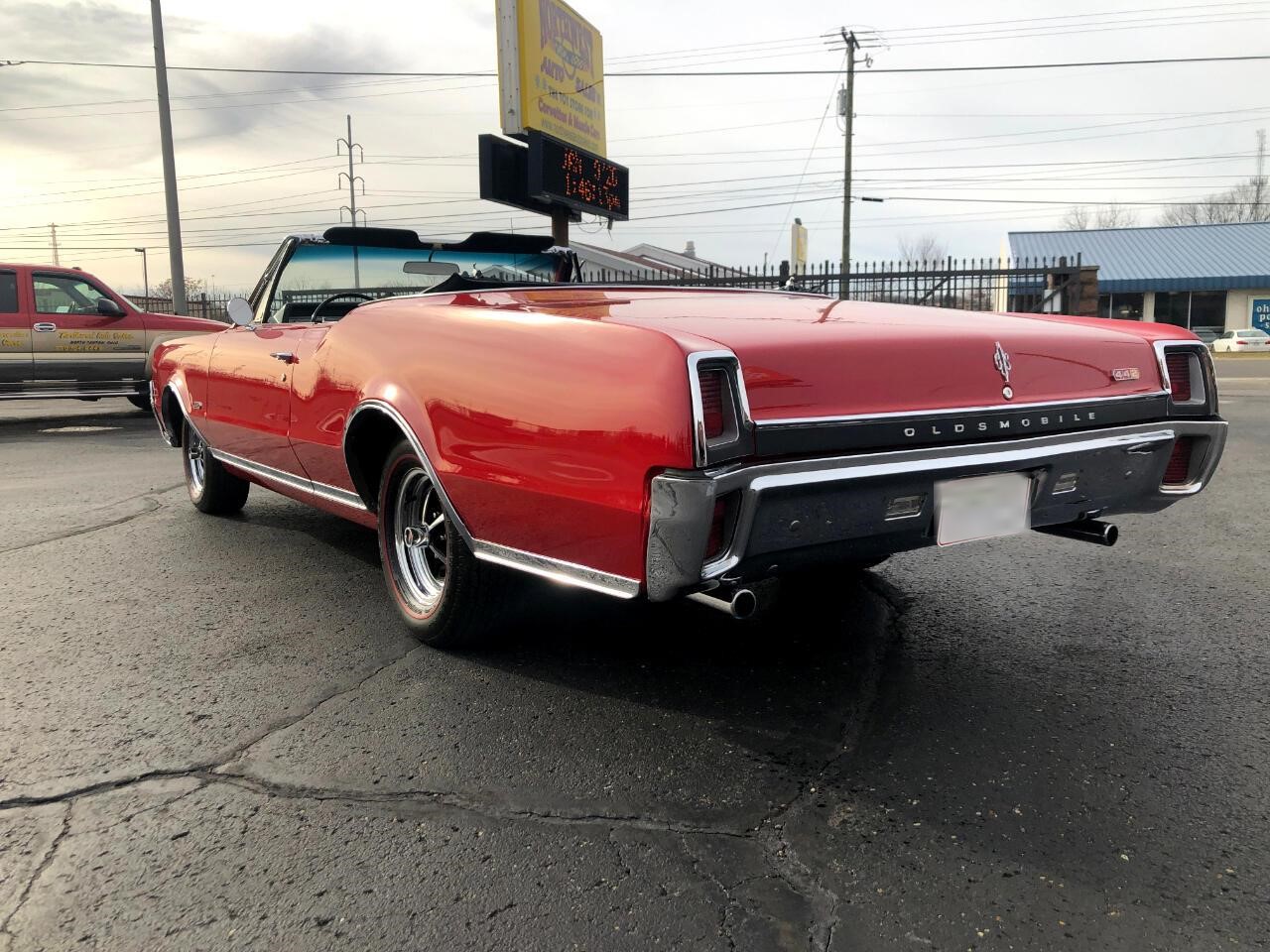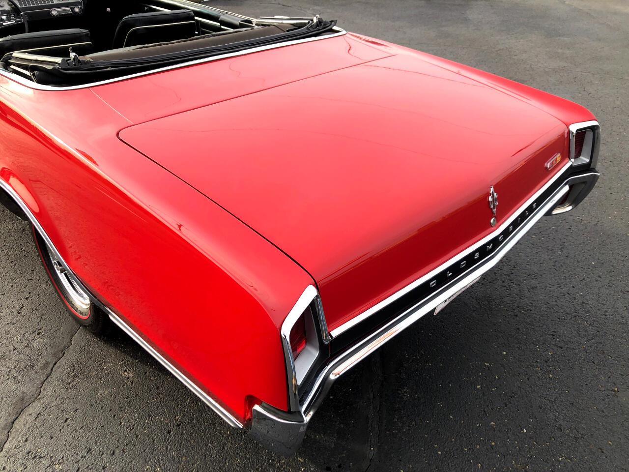 This gorgeous 1967 L78 442 convertible has under gone a meticulous frame off restoration .You ll drool over it s bright red paint coating a laser straight body. The interior has brand new black vinyl bucket seats and console. In addition the dash trim has been replaced. Great options included are the Turbo 400 3 speed automatic transmission power steering power brakes plus a new black power top and that s just to name a few. All the chrome and stainless moldings have been refinished to show quality. You could be riding on red line radial tires with new factory chrome wheels to enhance the ride.