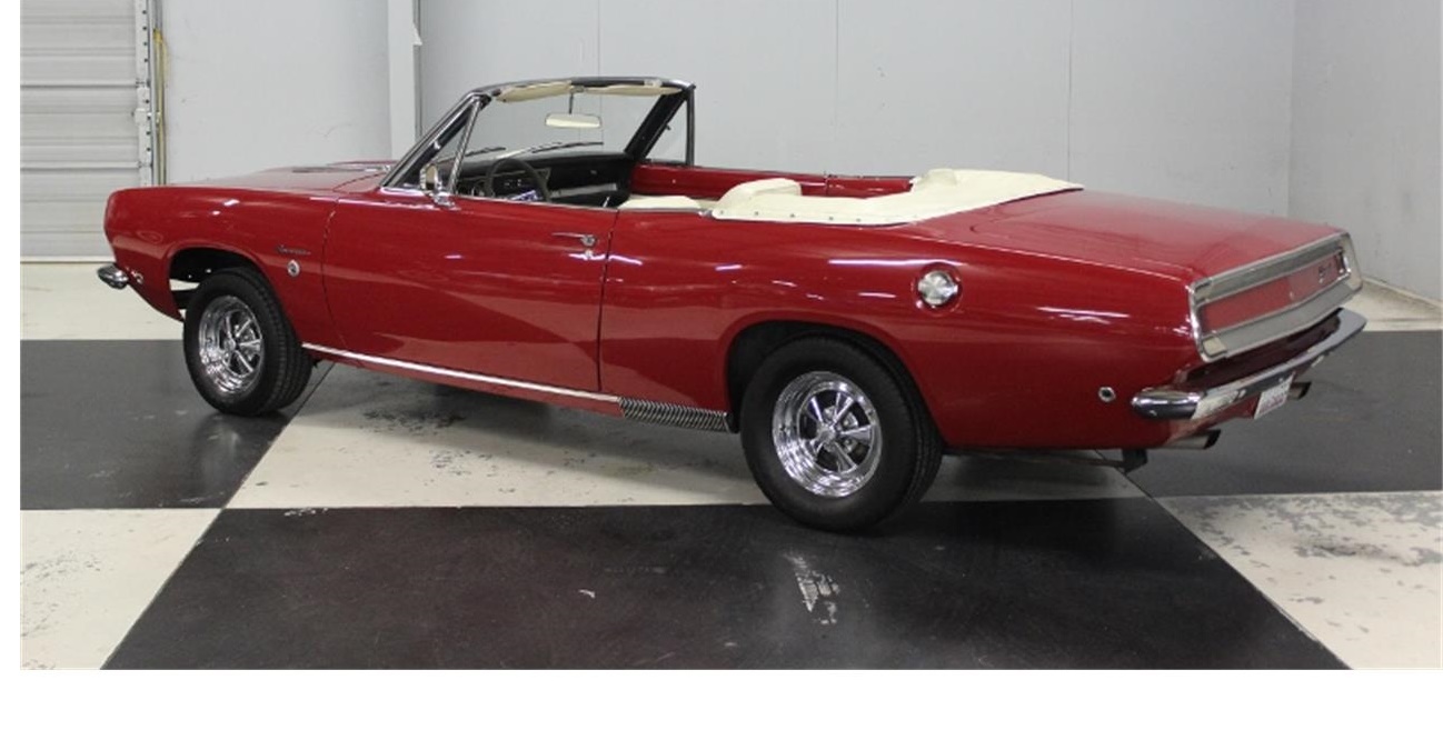 1968 Plymouth Barracuda.Painted Red this car is slick and pretty. Chrome hood emblems, front fender antenna, door handles, Rocker panel moldings.The door handles, emblems are like new. Grill looks good.Interior is White vinyl on bucket seats