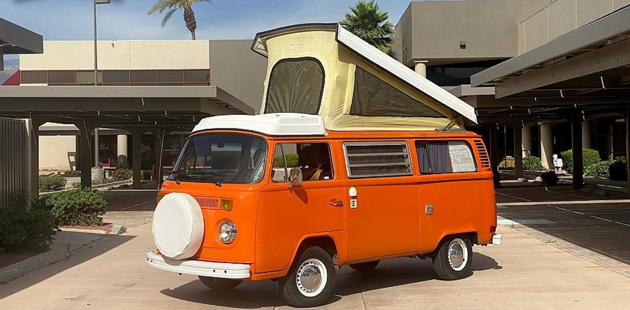 This bright orange 1975 Volkswagen Westfalia is exactly what you've been looking for. Functional, clean, and never used for anything more challenging than exploring the edges of civilization. The bodywork is in decent shape.