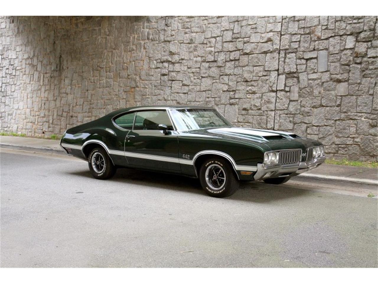 1970 Oldsmobile 442 numbers-matching 455 cubic inch "Rocket" V8 mated to a Turbo-Hydramatic 400 transmission, 12-bolt posi 3.23 rear end. Finished in its original color of Sherwood Green metallic. Rally-pac gauges are clear and working. Nice dash, carpets, door panels, seat upholstery and headliner.