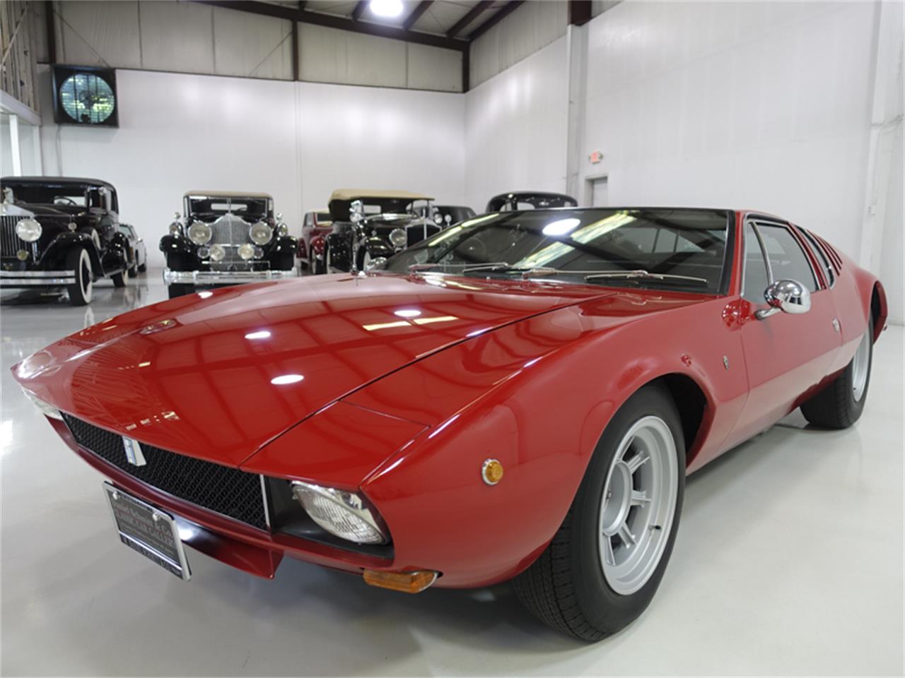 The incredible 1970 DeTomaso Mangusta featured here is finished in its factory color combination of Red over a black leather interior.