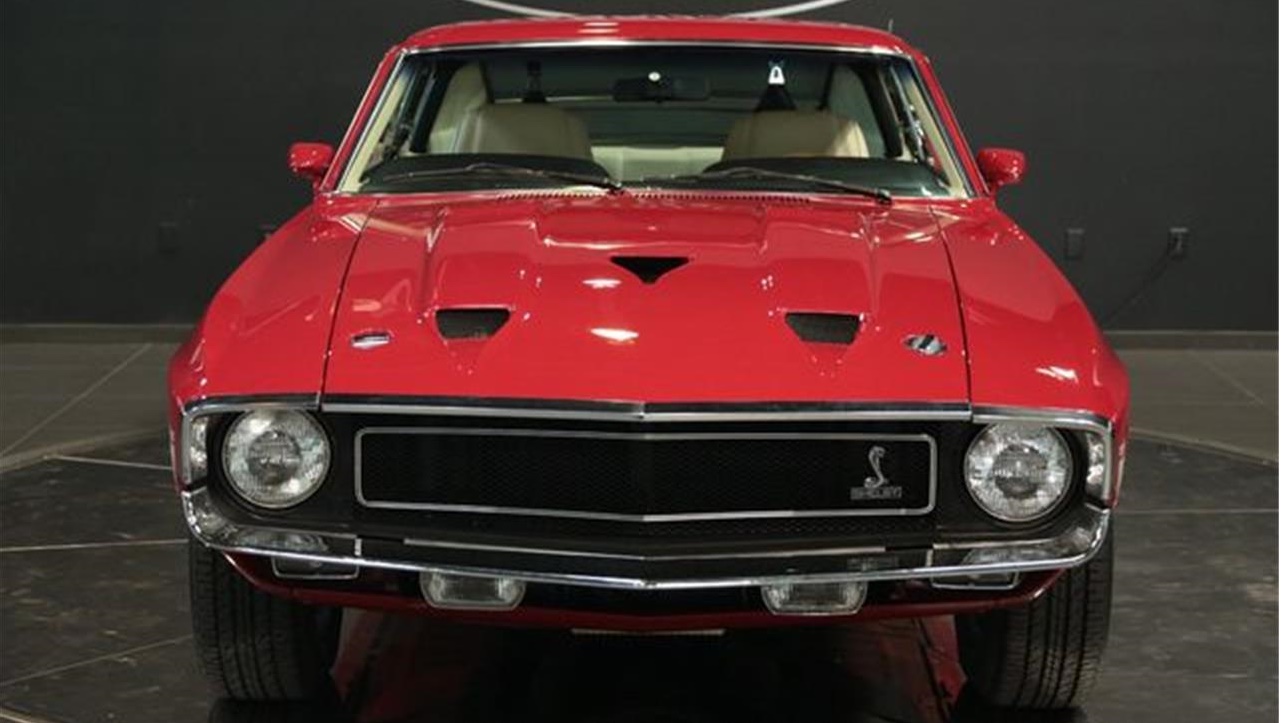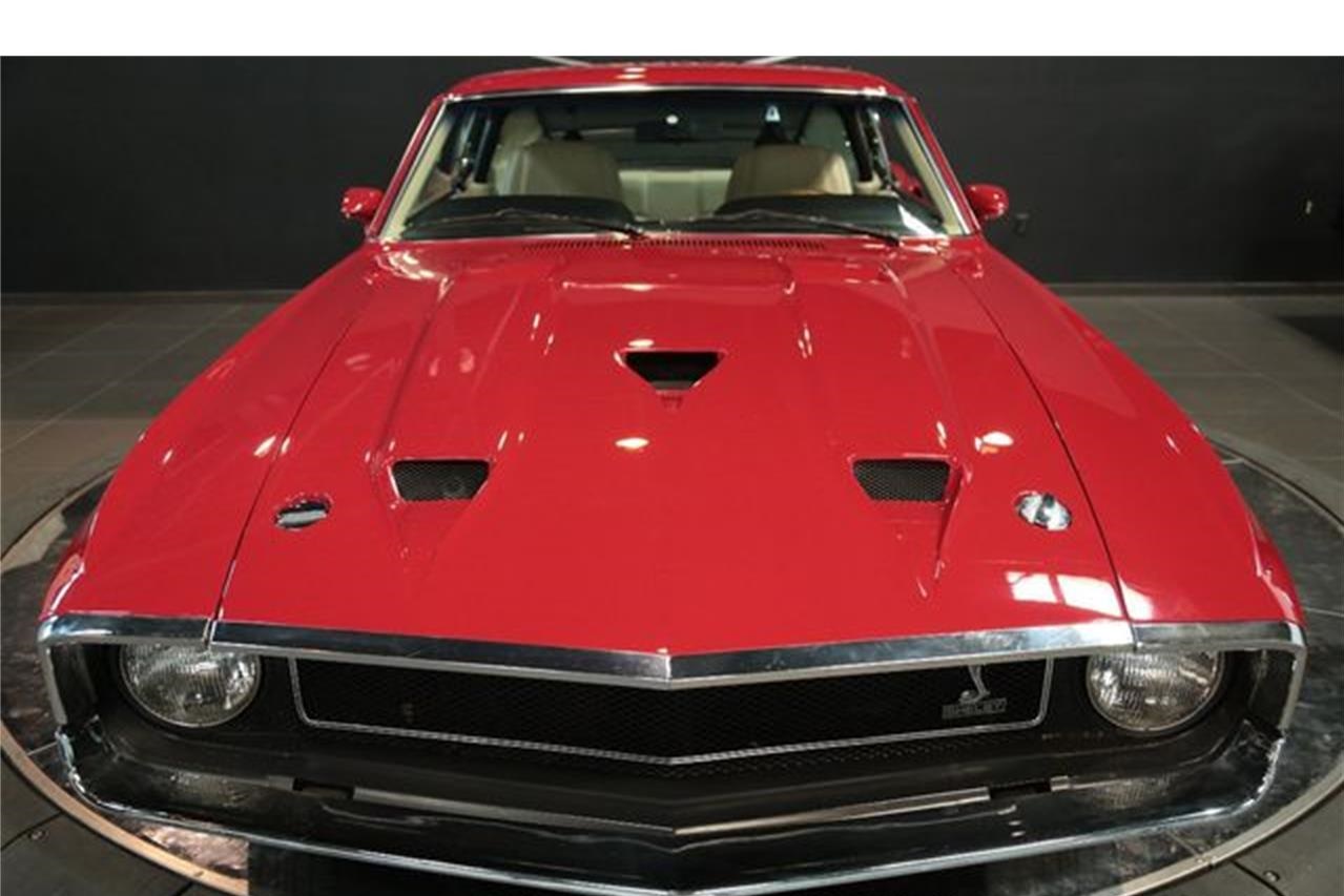 This 1969 Shelby GT500 2dr Fastback.t is equipped with a 4 Speed Manual transmission. The vehicle is Red with a Cream white Vinyl interior.