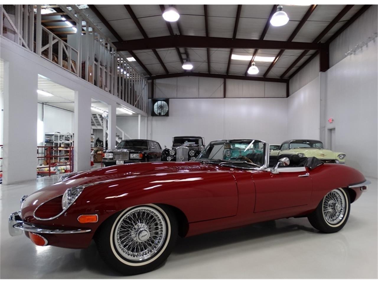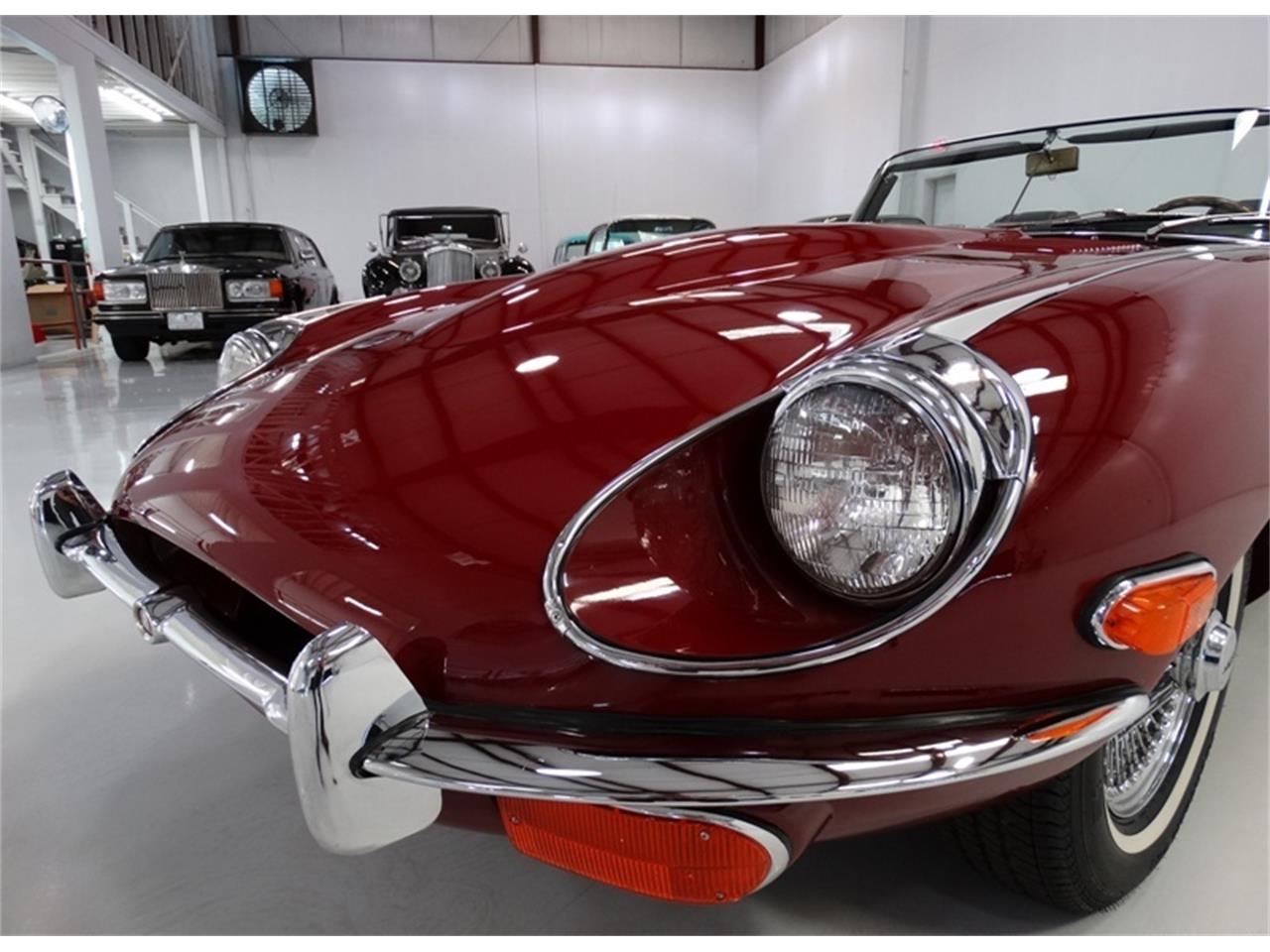 The incredible 1970 Jaguar E-Type Series II 4.2 Roadster featured here is finished in the stunning and highly desired color combination of Regency red with a stunning black leather interior and matching black folding convertible top.