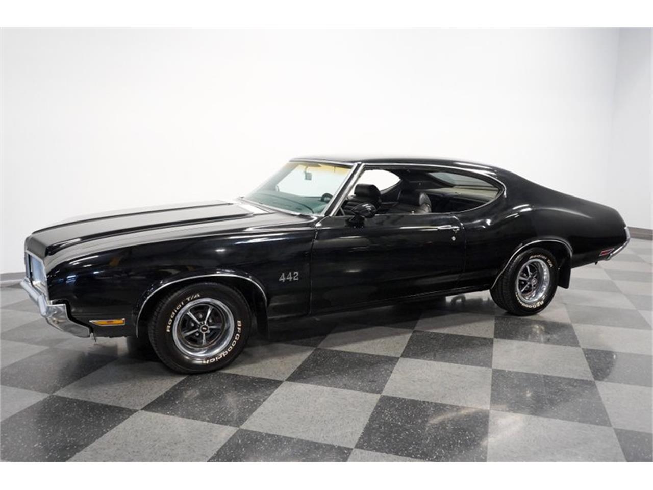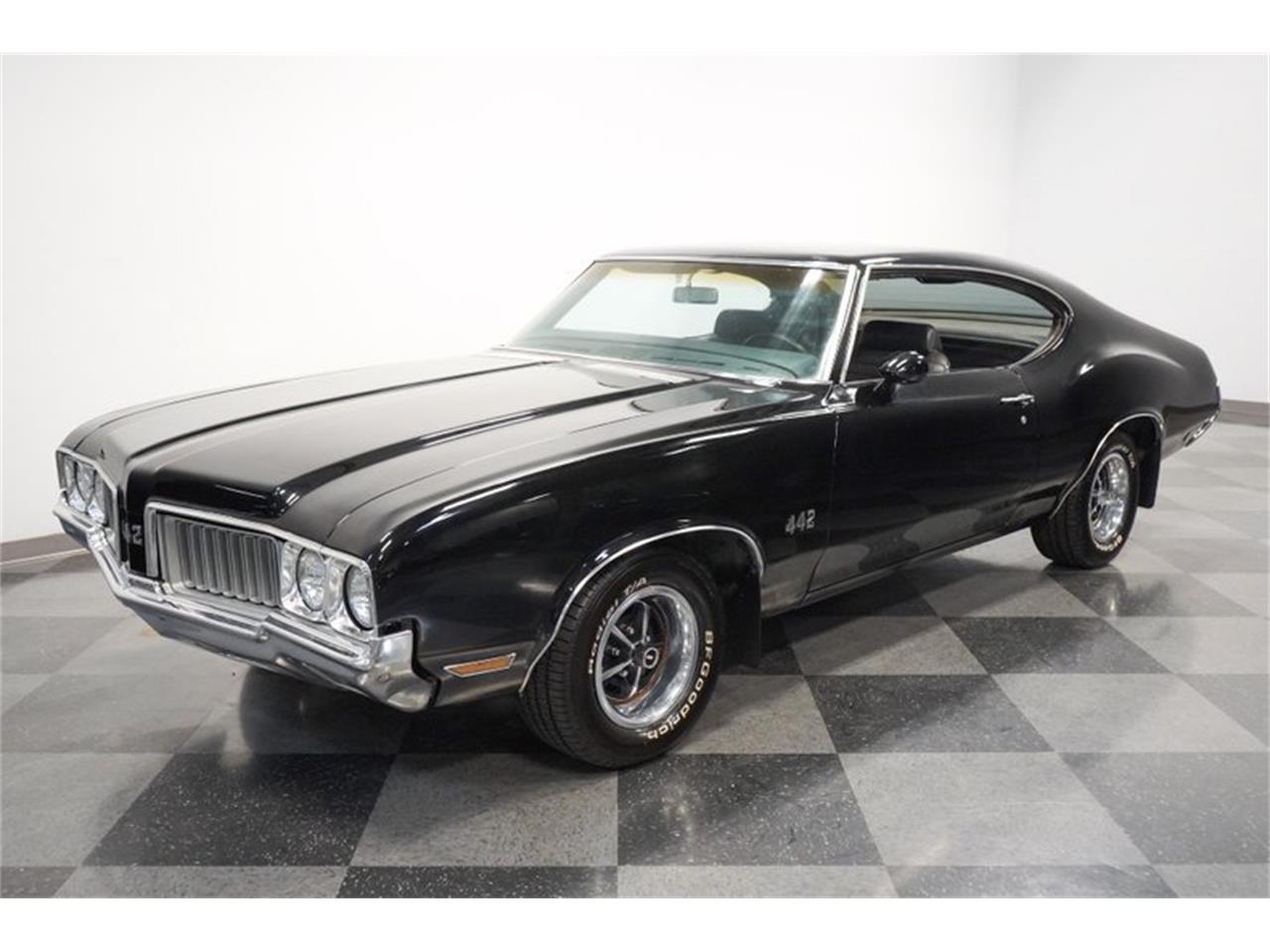 1970 Oldsmobile 442 numbers-matching 455 cubic-inch V8. The mighty V8 inhales deeper with a Holley four-barrel carburetor. It exhales with bigger power and authority as headers feed a very straight set of pipes on the glasspack-style dual exhaust. The strong TH400 three-speed automatic transmission feeds a 12-bolt Positraction rear end. Plus, reinforced rear arms and a sway bar give you a confident feeling on the road. The factory-correct black looks highly original on everything from the carpeting, to the button-top trim of the seats.