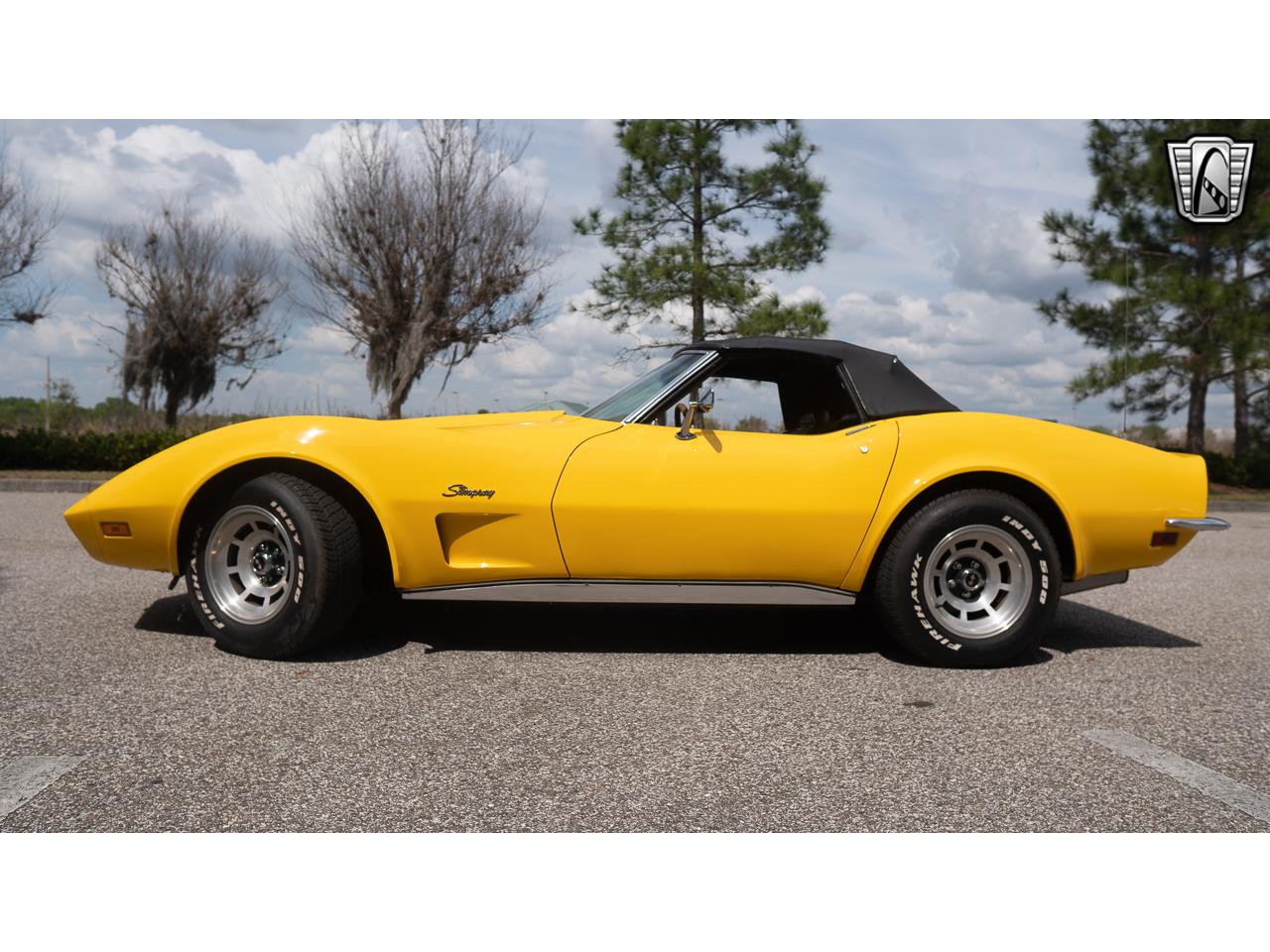 73 Chevrolet Corvette with the original color combination of Yellow paint with a Saddle interior, and a black soft top. Powered by the numbers matching engine, transmission, and rear end. 350 CID V8 has a nice sound and puts out plenty of power for cruising in style. Options include A/C, power steering, power brakes, manual convertible top, AM/FM radio, vinyl interior, seat belts, tilt wheel, aluminum alloy wheels and radial tires.