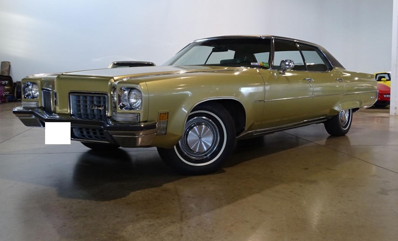 1972 Oldsmobile 98 Regency for sale. Original Tiffany Gold Metallic with Covert Beige interior and with just 50,251 miles. This car is a turn key luxury cruiser in which all features function as they should. These features include air conditioning, AM/FM/8 track, cruise control, power brakes, power steering, power locks, power windows, power seats, and power mirrors. The air conditioning has been converted to R-134 and blows cold.