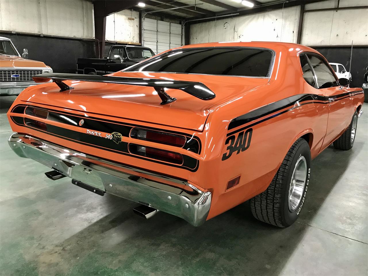 Exterior: Solid body with good, Hemi Orange paint. Very clean underneath - no rust issues. 15x7 and 15x8 Rallye wheels. 215/60-15 and 255/60-15 tires. Go Wing. Hood scoops. Interior: Factory, black interior - presents well. Bench seat. Rubber floor mat (no carpet). Mechanical: 340ci V8 - runs strong. 904TF, 3 speed automatic transmission. 8-3/4 rear end. Air-conditioning. Power steering. Manual brakes (front disc). Headers and dual exhaust with Flowmaster mufflers.