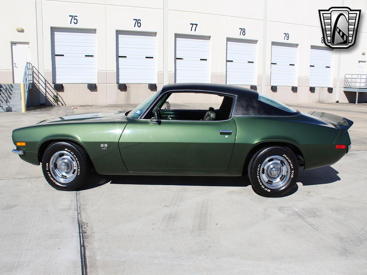 1970 Chevrolet Camaro. This Camaro features the original 350 CID V8 and the original TH350 transmission. Keeping this timeless classic up and running a few things had to be done as time went on. These things include new sway bars front and rear, QA1 level 2 handling package, new brakes, rebuilt carburetor, all new ignition components including coil, motor mounts, new exhaust, and power steering hoses. Painted in a darker green, with black vinyl top.