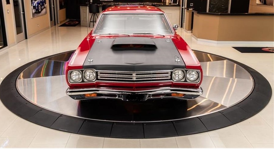 Check out this beautiful 1969 Plymouth Road Runner A12. glossy Red Paint finish, Black Interior, Fiberglass Hood.