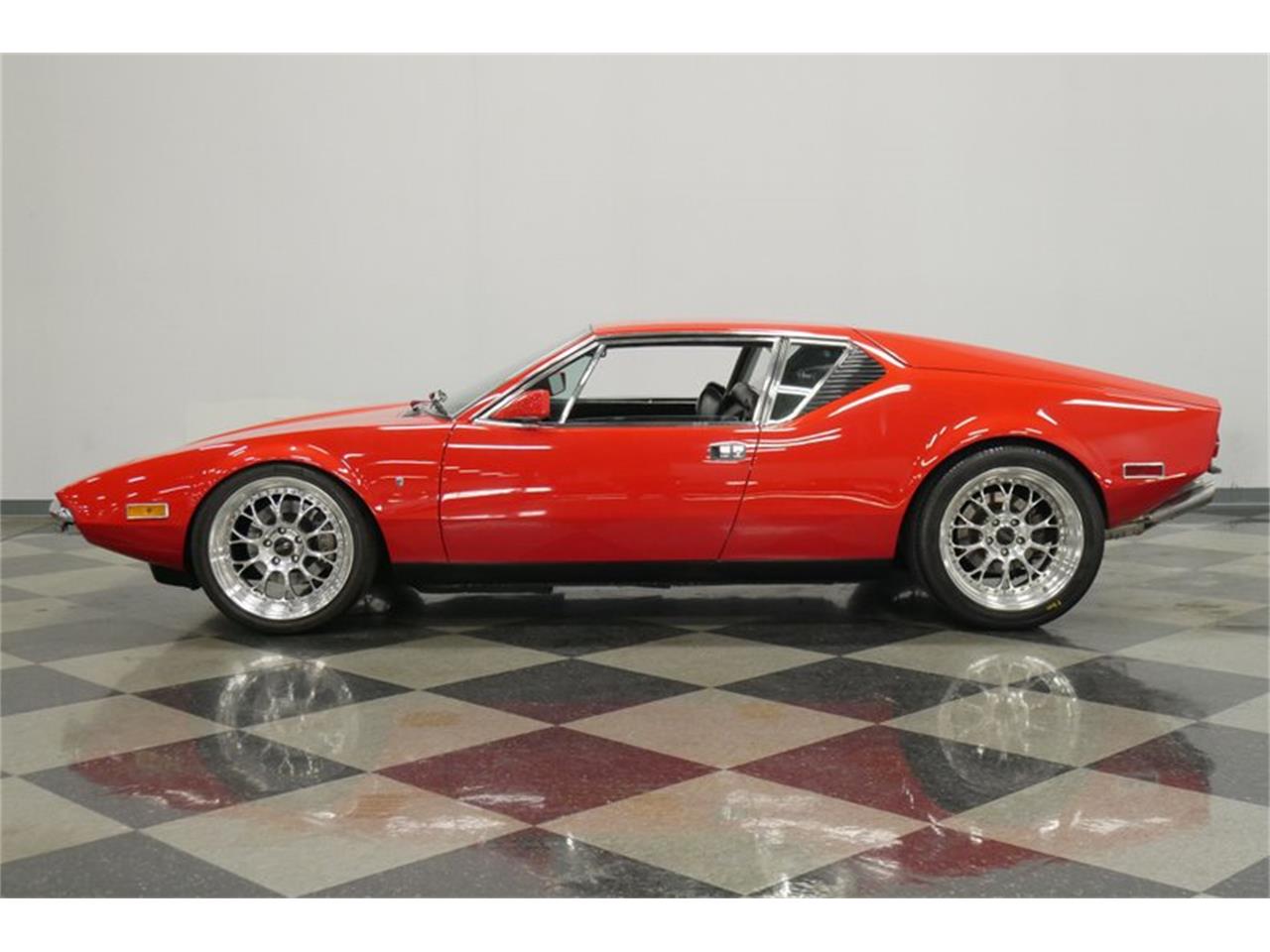 1972 De Tomaso Pantera powered by a Ford 351 cubic-inch Cleveland V8 - 030 bore over kit, Edelbrock aluminum heads, Edelbrock 600 CFM four-barrel carburetor w/electric choke, aluminum intake, and long tube headers. It delivers smooth power and torque with a wailing V8 exhaust note that will give you chills. The ZF five-speed manual means you are in full control over this power and soundtrack. A reinforced fully-independent suspension, four-wheel power disc brakes. Bucket seats with plenty of space, taut door cards, power windows, and even provisions for air conditioning, all make this one feel like comfortable cruiser. The dash has a terrific vintage look, right down to vertical AM/FM radio on display. But your real driving tunes come from a cleanly installed AM/FM/CD stereo w/CD changer. Your left hand goes on the upgraded sports steering wheel, which looks perfect with the DeTomaso logo in the middle.