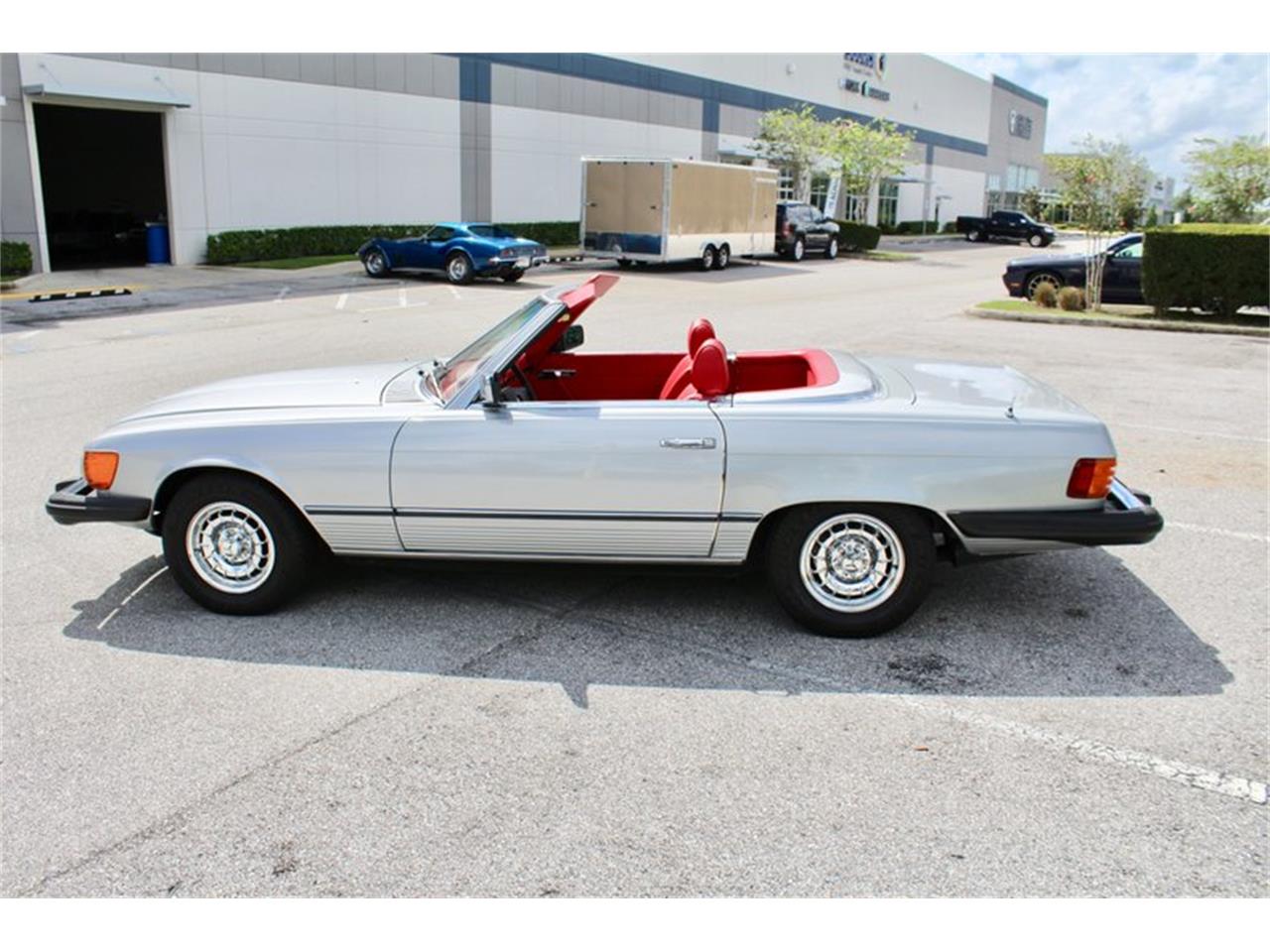 1976 Mercedes 450SL roadster. complete with both tops and in showroom condition. very rare silver with red leather interior. nothing altered or damaged just had a complete 30k service including new Michelin tires and full tune up including brake service. everything works- smells and operates and new. original working Becker radio and ICE cold working AC.